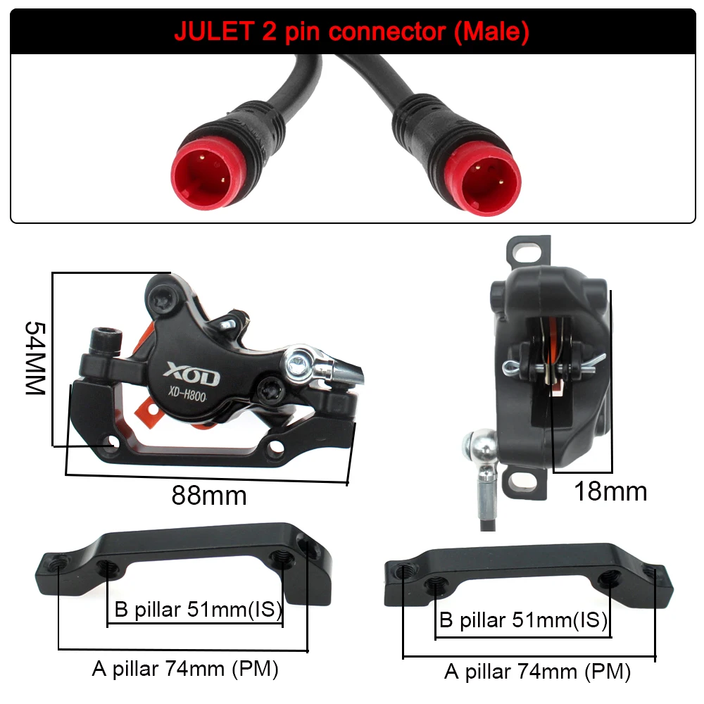 Length of oil pipe: 1.35m for front brake, 2.15m for rear brake