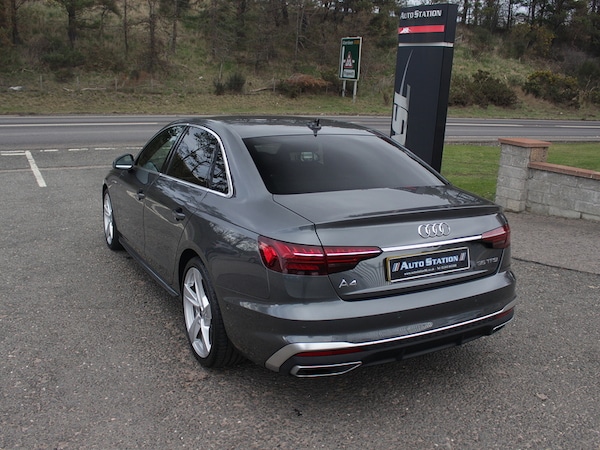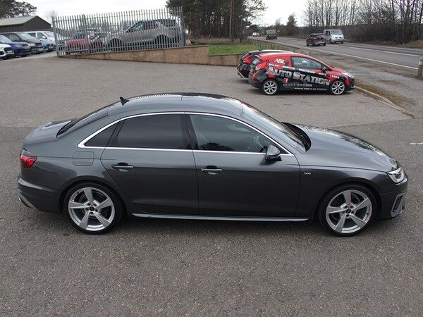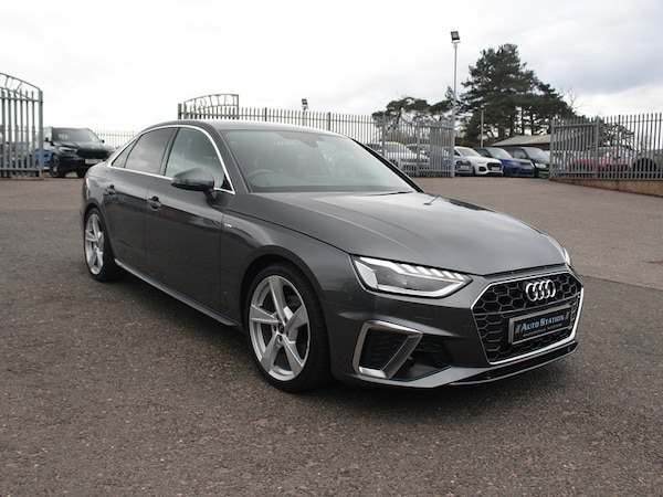 This one owner, low mileage Audi A4 Saloon 35- B&O Sounds System- Heated Front Seats- Leather/Alcantara- Virtual Cockpit- 19"" Audi Sport Alloys - 8.5J 5-Arm Torsio Design- Aluminium Inlays- Electric Boot.Daytona Grey,Technology Pack, 2 USB Charging Ports, 8 Passive Loudspeakers, Audi Connect Infotainment Services (36 Month Subscription From New), Audi Connect Safety and Service, Audi Smartphone Interface, Bluetooth Interface, DAB Digital Radio Reception, MMI Navigation Plus including MMI Touch, Attention and Drowsiness Assist, Audi Drive Select, Camera-Based Traffic Sign Recognition, Cruise Control System with Speed Limiter, Lane Departure Warning, Parking System Plus - Front and Rear Sensors, Rear-View Camera, Voice Control, 19in Alloy Wheels - 8.5J 5-Arm Torsio Design, Anti Theft Locking Wheel Bolts, Body Coloured Door Mirrors, Door Mirrors - Folding with Auto-Dimming, Electric Windows - Front, Front Spoiler Lip in Body Colour, High Gloss Package, Privacy Glass, Radiator Grille with Honeycomb Structure in Grained Matt Black, S Line Badges on Front Wings, S line Front and Rear Bumpers and Side Skirts, S Line Rear Diffuser in Matt Anthracite Black with Trim Strip in Matt Aluminium Silver, Side Air Inlets in Grained Matt Black with Inlay in Matt Aluminium Silver, Tyre Repair Kit, Windscreen with Acoustic Glazing, Headlights - High-Beam Assist, LED Headlights with LED Rear Lights and Dynamic Rear Indicators, Light and Rain Sensor, 3-spoke Leather High Multi-function Sport Steering Wheel with Grips in Perforated Leather with S Badging, 4-Way Electric Lumbar Support, Audi Virtual Cockpit, Auto-Dimming Rear-View Mirror, Cloth Headlining in Black, Contrast Stitching on Seats - Steering Wheel and Gear-Lever Gaiter, Deluxe 3-Zone Electronic Climate Control, Electric Boot Lid Release, Email - Calendar and Text Messages can be Displayed on your Vehicles MMI, Front Centre Armrest, Front Sports Seats, Gear-lever Knob in Black Perforated Leather, Heated Front Seats, Illuminated Door Sill Trims with S Logo, Inlays - Matt Brushed Aluminium, Keyless Go, LED Interior Lighting Pack, Manual Seat Adjustment, Pedals and Footrest - Stainless Steel, Split-Folding Rear Seat Bench in 3 Parts - 40-20-40 with Rear Centre Armrest, Tool Kit, Automatic Start-Stop with Coasting Functionality and Efficiency Programme, Electromechanical Power Steering, Sport Suspension, 6-Airbag System, Anti-Theft Alarm, ESC - Electronic Stabilisation Control inc ABS - ASR and EDL, First Aid Kit and Warning Triangle, Hill Hold Assist, ISOFIX Child Seat Mounting and Top Tether, Multi Collision Brake Assist, Pop-Up Bonnet for Pedestrian Protection, Pre-Sense City, Seat Belt Monitoring