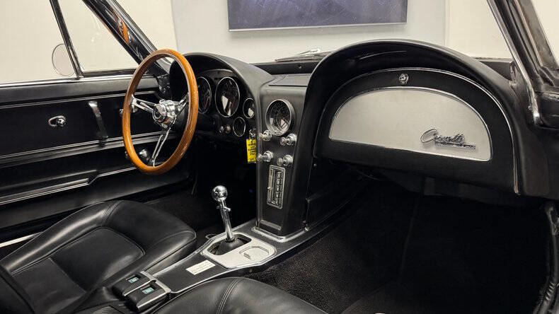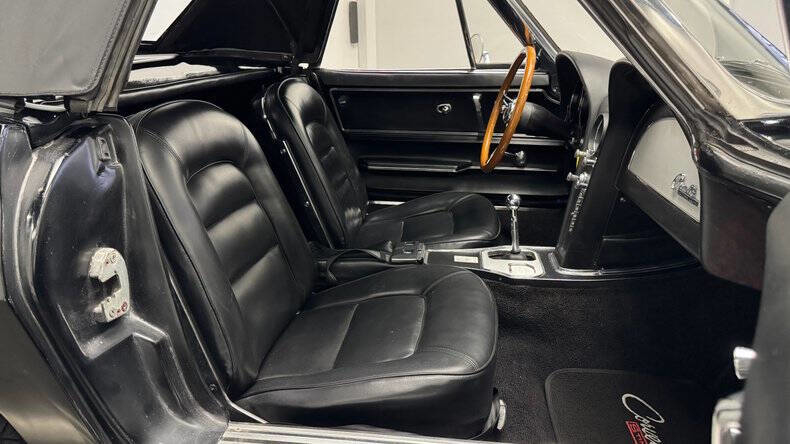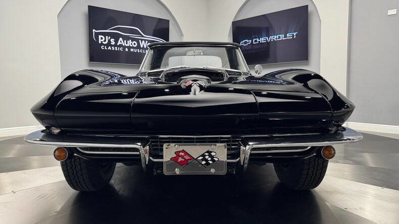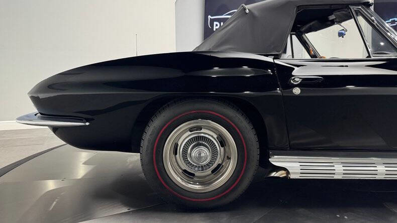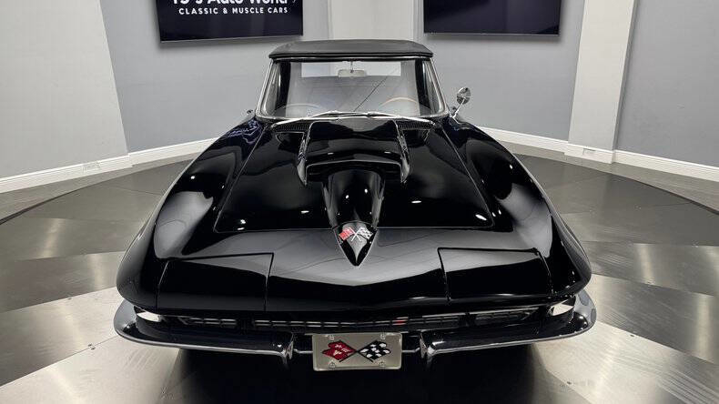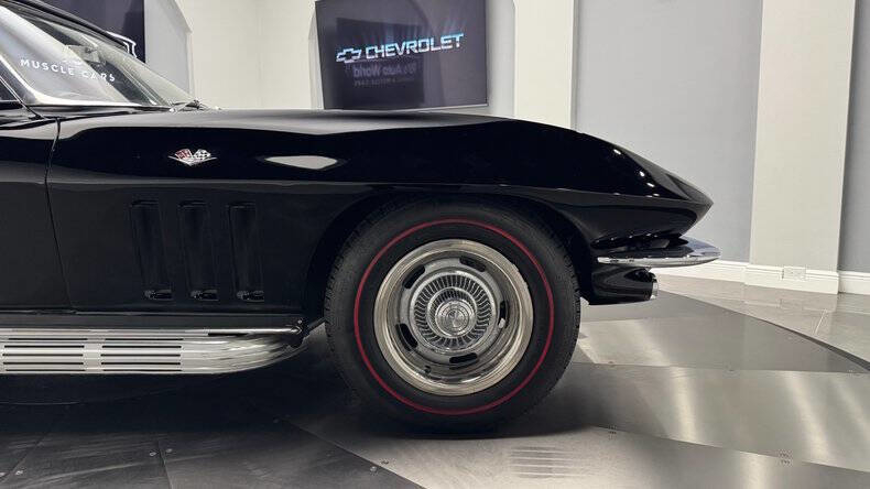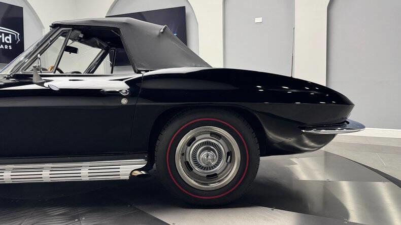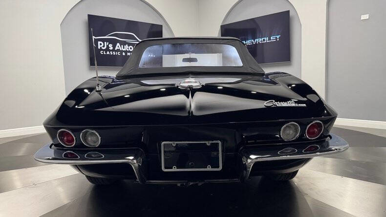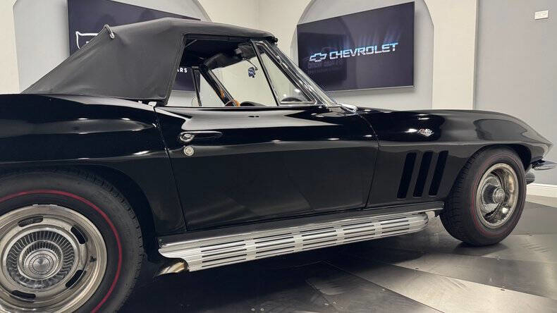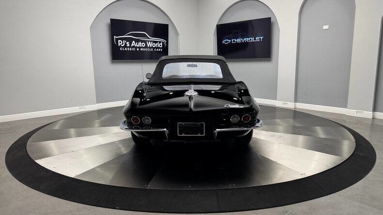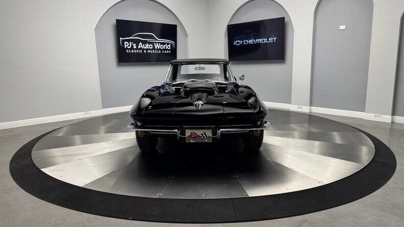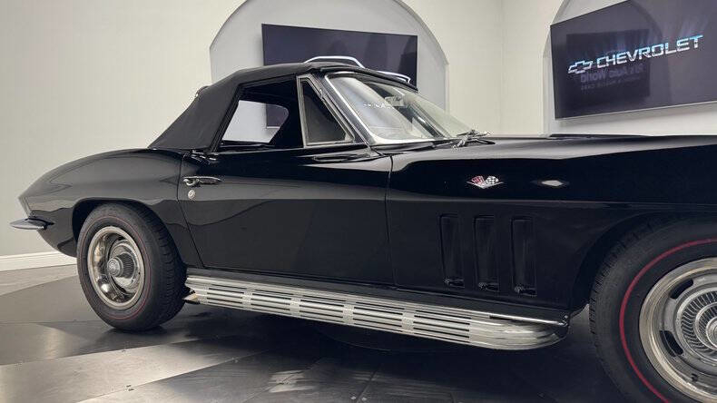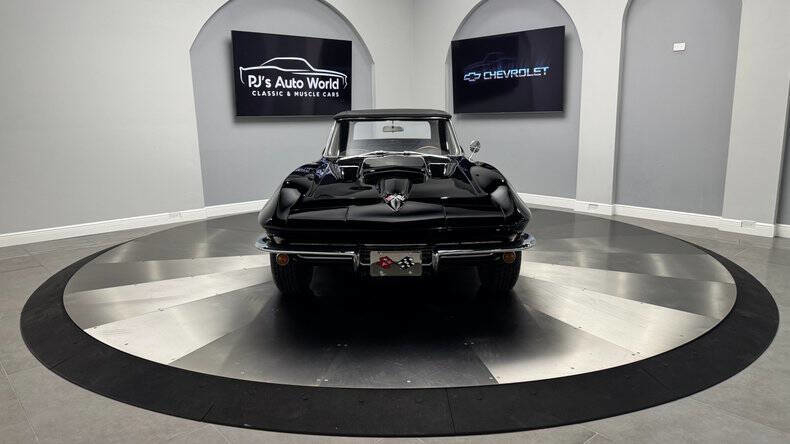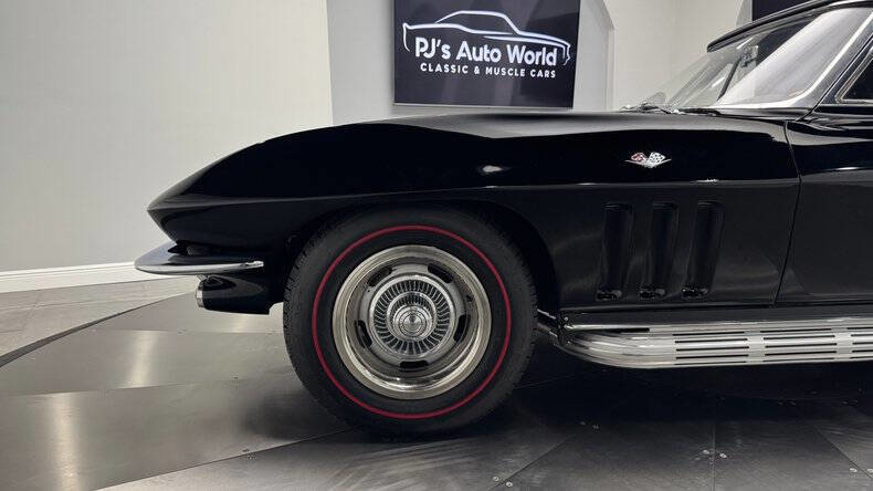 PJ's Auto World is pleased to offer this 1965 Chevrolet Corvette Stingray Convertible for Sale. 327 V8, SA Suffix Code engine block, Eldelbrock aluminum intake, Holley 4-barrel carburetor, HEI electronic ignition, side exhaust, Muncie 4-Speed manual transmission, 15 Rally Wheels with BF Goodrich Silvertown radial red line tires, refinished black with a Stinger style hood, hideaway headlights, driver's chrome mirror, black convertible top, black bucket seat interior, 3-spoke wood trim steering wheel, beautiful gauge package, AM/FM radio. Come in and check out this beautiful Mid-Year Corvette! With over 45 years of dedicated service to the Collector Car Community, our team is eager to answer any questions you may have. Finance options available and worldwide shipping can easily be arr