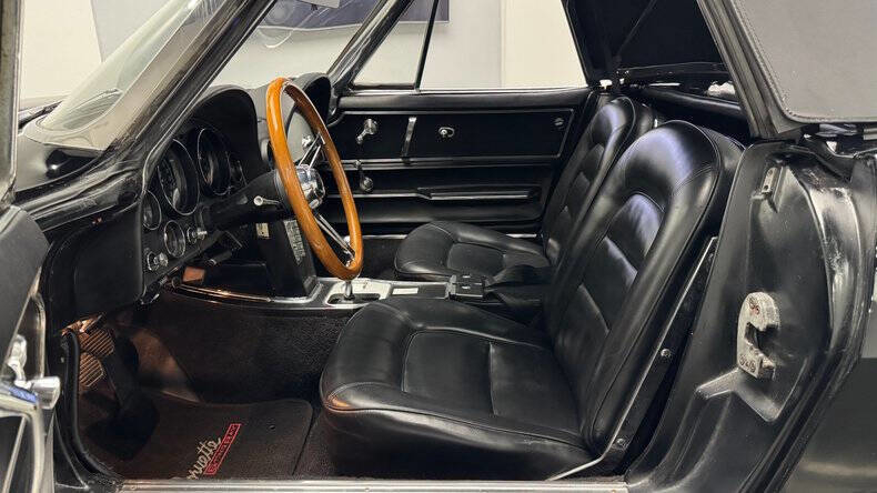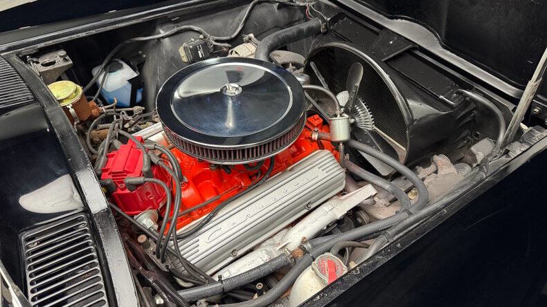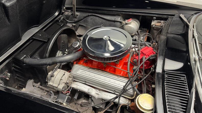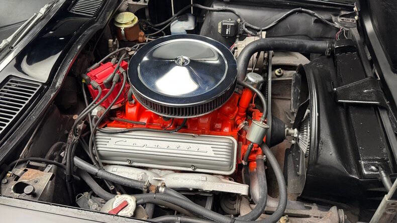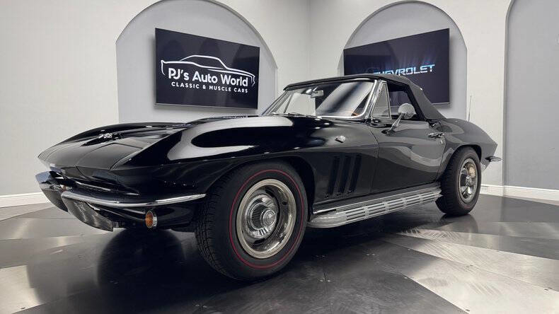 PJ's Auto World is pleased to offer this 1965 Chevrolet Corvette Stingray Convertible for Sale. 327 V8, SA Suffix Code engine block, Eldelbrock aluminum intake, Holley 4-barrel carburetor, HEI electronic ignition, side exhaust, Muncie 4-Speed manual transmission, 15 Rally Wheels with BF Goodrich Silvertown radial red line tires, refinished black with a Stinger style hood, hideaway headlights, driver's chrome mirror, black convertible top, black bucket seat interior, 3-spoke wood trim steering wheel, beautiful gauge package, AM/FM radio. Come in and check out this beautiful Mid-Year Corvette! With over 45 years of dedicated service to the Collector Car Community, our team is eager to answer any questions you may have. Finance options available and worldwide shipping can easily be arranged. Interesting trade-ins will also be considered.