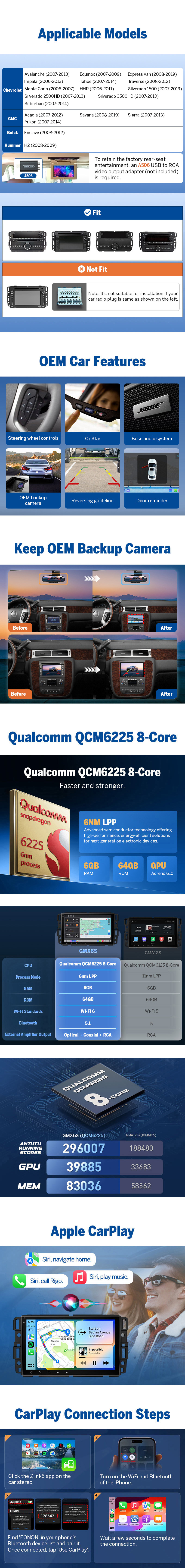 Upgrade your factory radio the premium way with the Eonon GMX6S 8” QLED Android 13 Car Stereo—a direct-fit, plug-and-play system for select Chevy / GMC / Buick / Hummer vehicles. Designed for drivers who expect flagship performance, DSP-grade sound, QLED clarity, wireless CarPlay/Android Auto, 4G LTE connectivity, offline navigation, and long-term OTA support—all while preserving key factory functions.