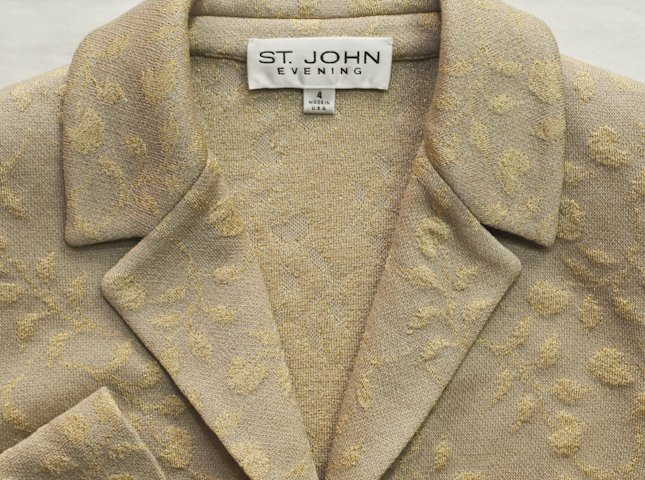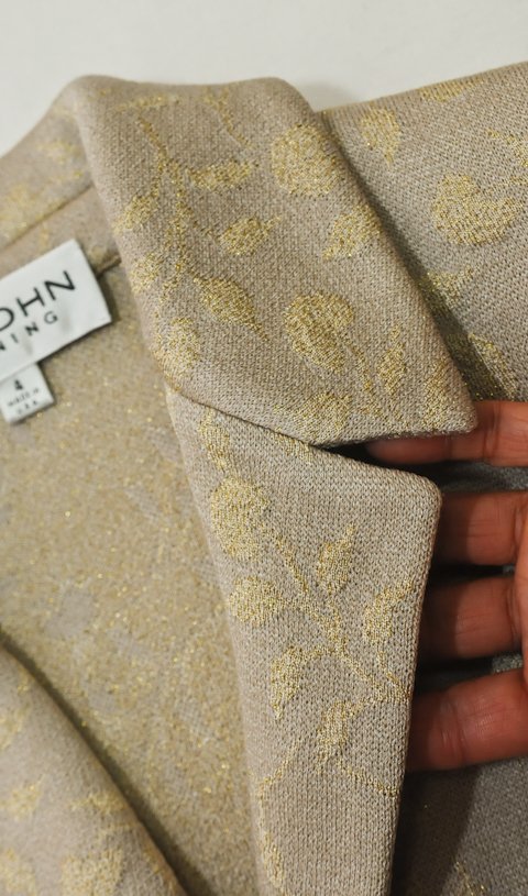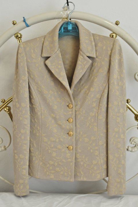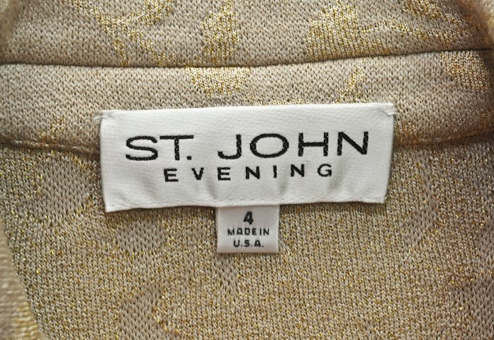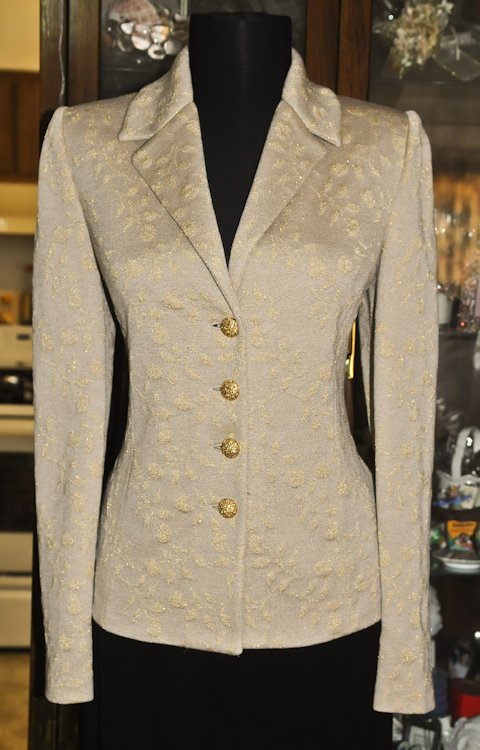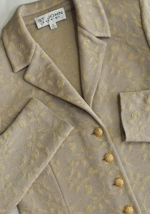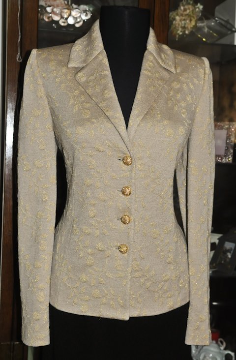 MINT !!! ST JOHN EVENING METALLIC GOLD/BEIGE JACKET w/ FLORAL DESIGNS: JACKET SZ 4 $2800.00.