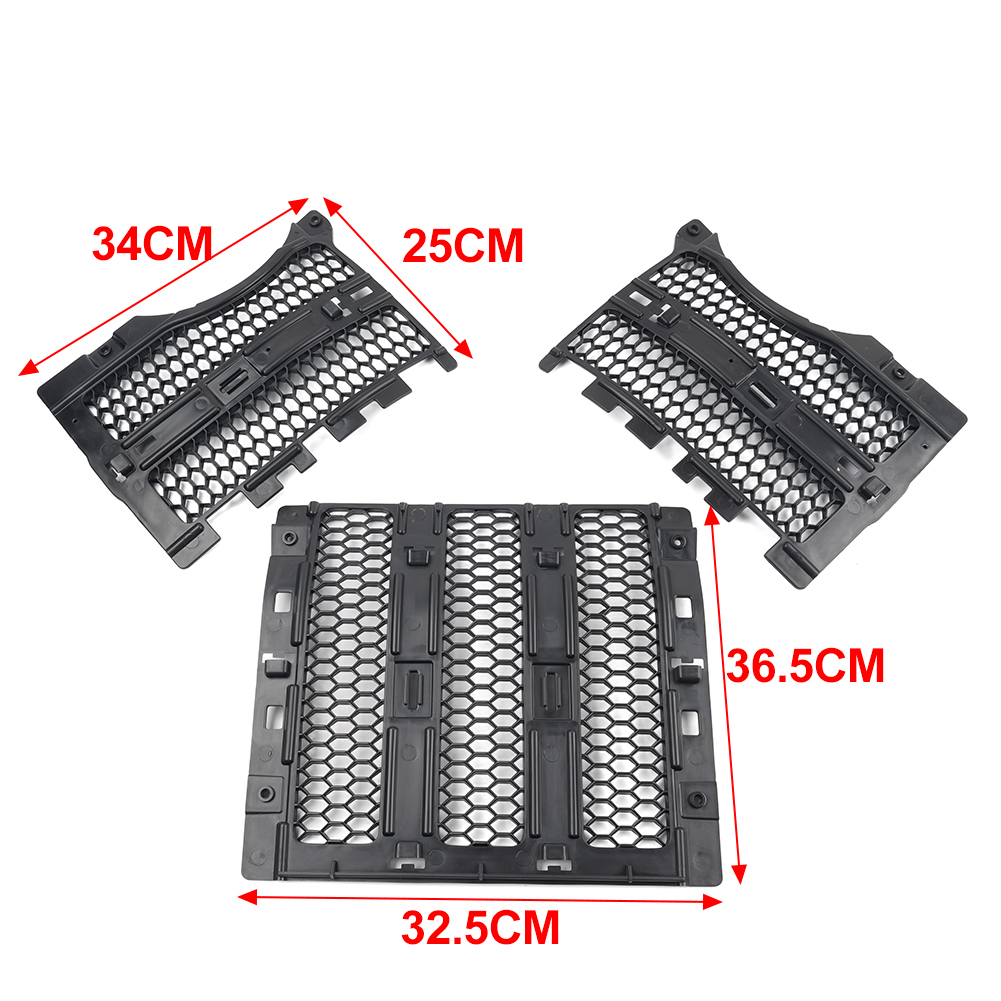 Interior Mesh Front Grille Insert Cover For Jeep Wrangler JL JT 2018-2024 Features: 1. Effectively protect your engine from stone, glass and other road debris. 2. Decorate your car charming luxury vivid, giving you a new visual enjoyment. 3. According to the original factory specifications, perfectly match with your original car. 4. Made of high quality ABS plastic, durable, waterproof, scratches resistant, anti-rust and anti-corrosion, not easy to deform or crack. Specification: Condition: 100% Brand New Material: High Quality ABS Plastic Color: Black Fitment Type: Performance/Custom Placement On Vehicle: Front Fitment: For Jeep Wrangler JL 2018-2024 For Jeep Gladiator JT 2018-2024 Please check our item description, photos and sizes to make sure this item can fit on your car before purchasing. Package Include: 3Pcs Front Grille Insert Cover Notes: 1. All dimensions are measured by hand, there may be small deviations. 2. No installation instruction included, professional installation is highly recommended. 3. The real color of the item may be slightly different from the pictures shown on website caused by many factors such as brightness of your monitor and light brightness.
