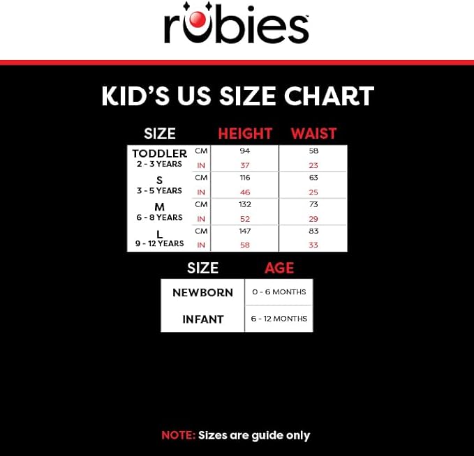 - Rubie’s Official Licensed product tested to all required European and UK standards, including EN71 and REACH
