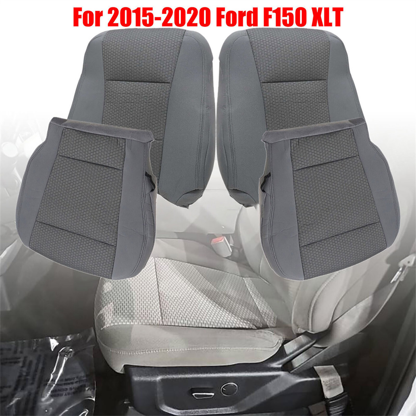 4* For Ford F150 XLT 2015-2020 Driver+Passenger Bottom-Top Seat Cover Cloth