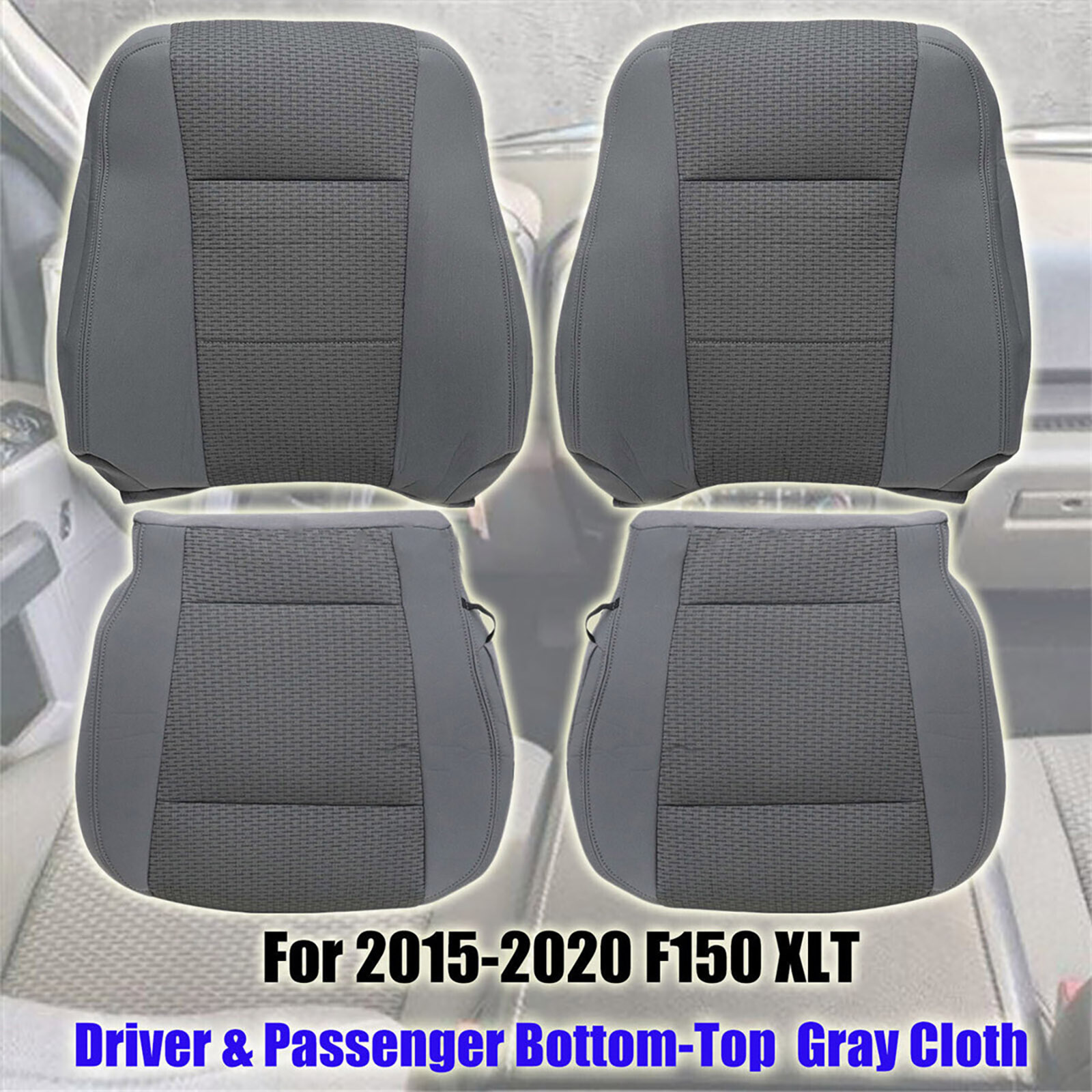 4PCS For Ford F150 XLT 2015-2020 Driver+Passenger Bottom-Top Seat Cover Gray Cloth