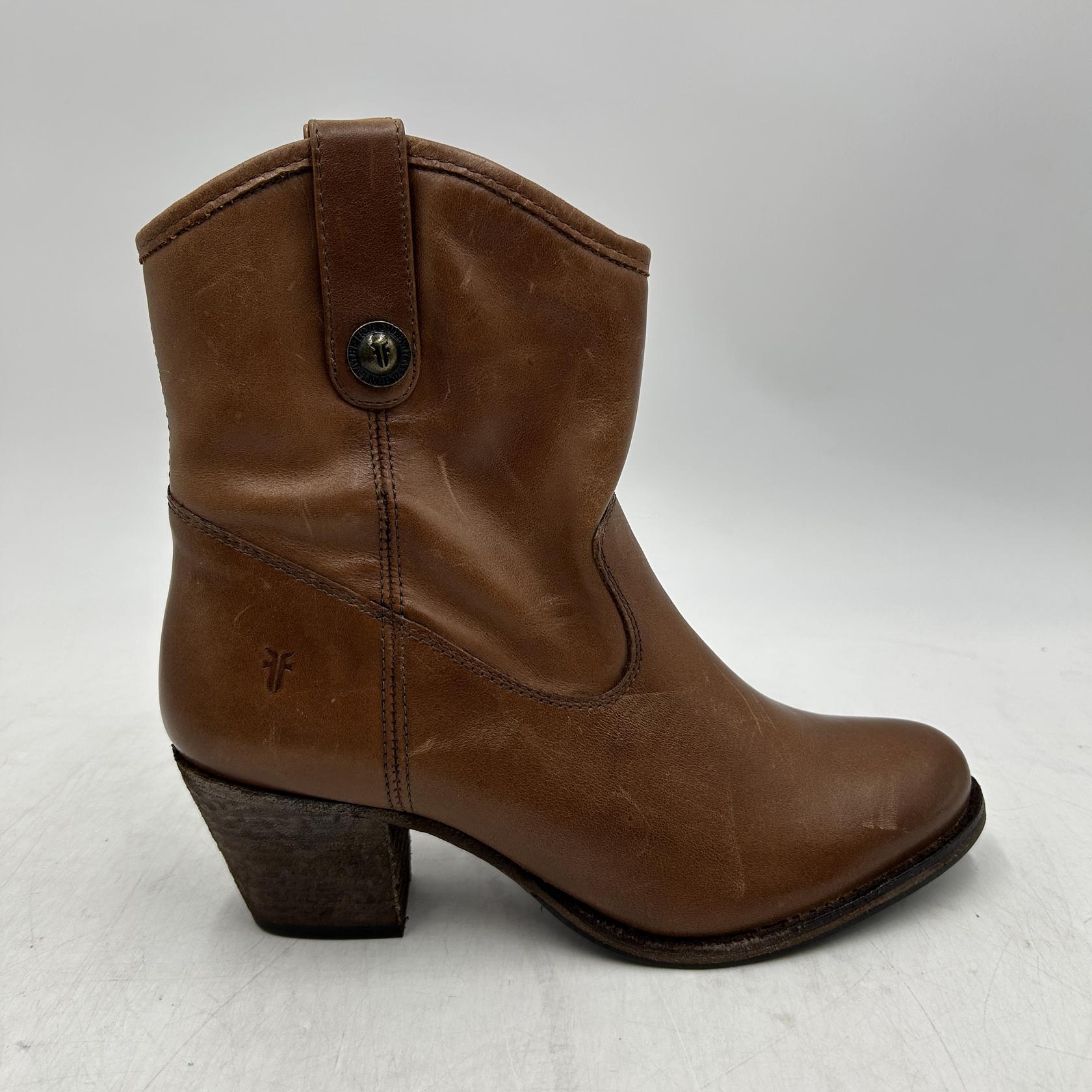 Frye Jackie Button Short Women's Leather Boots, Cognac, Size 8