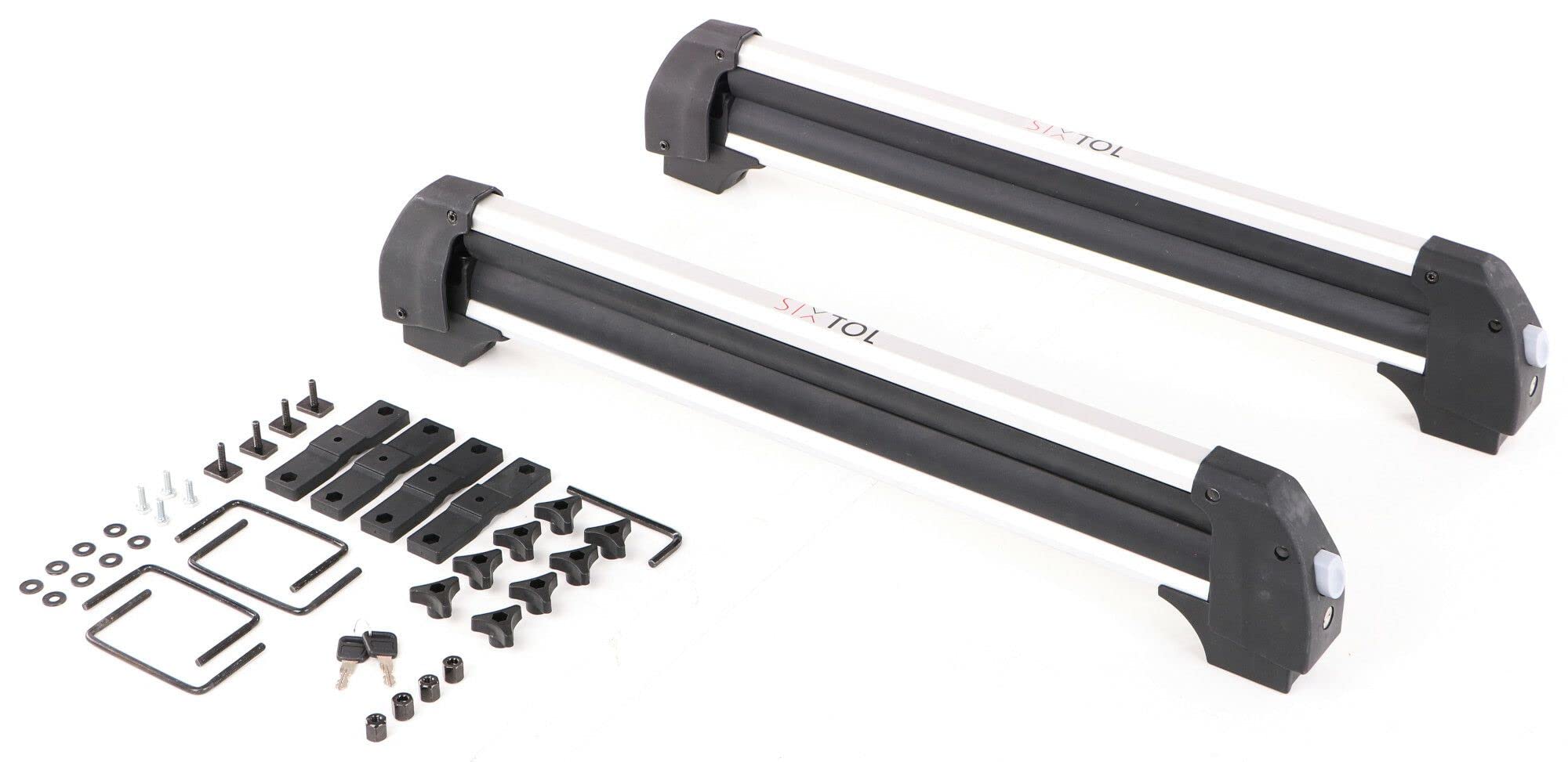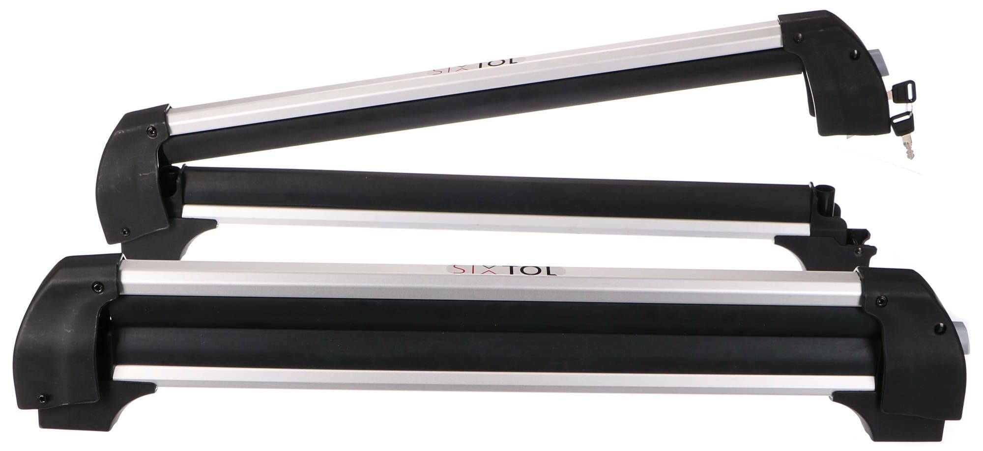 Technische Parameter: Satz: 2 Stueck Breite der Querstangen: 76 cm Liegeflaeche: 61 cm Maximale Tragfaehigkeit: 35 kg Art der Befestigung: auf Querstangen T-Schraubenbreite: 20 mm Abschliessbar: ja, 2x Schluessel Verriegelung am Fahrzeug: ja Tragfaehigkeit: 6 Paar Skier oder 4 Snowboards/Wakeboards/Kiteboards