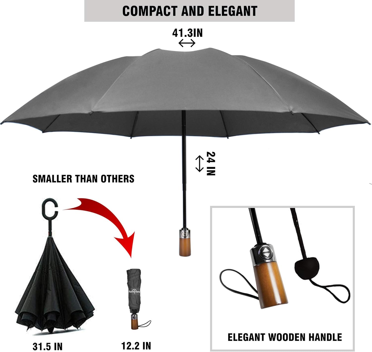 FOLDABLE UMBRELLA PLE is the idea. The Rain Umbrella is delivered in a box,ready to go. Elegant automatic umbrella will bee the to every woman!