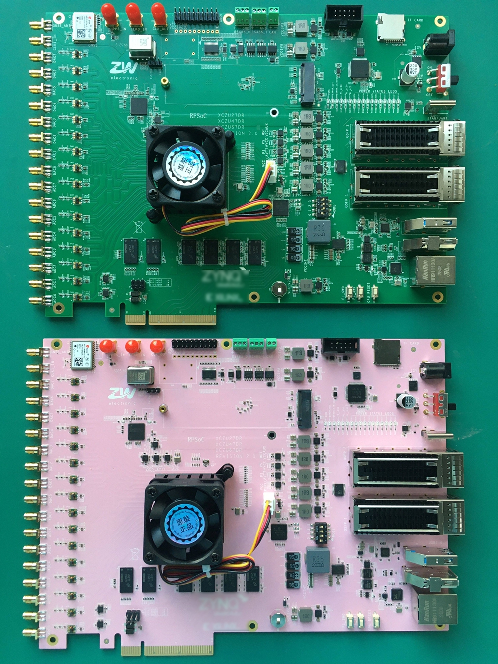 AD DA:- XCZU27DR: 8-channel AD (12 bit 4.096 GSPS), 8-channel DA (14 bit 6.554 GSPS)