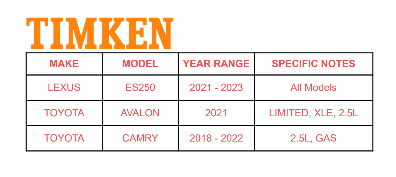 | LEXUS | ES250 | 2021 - 2023 | All Models |
