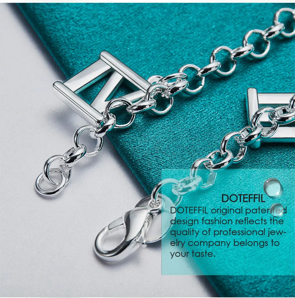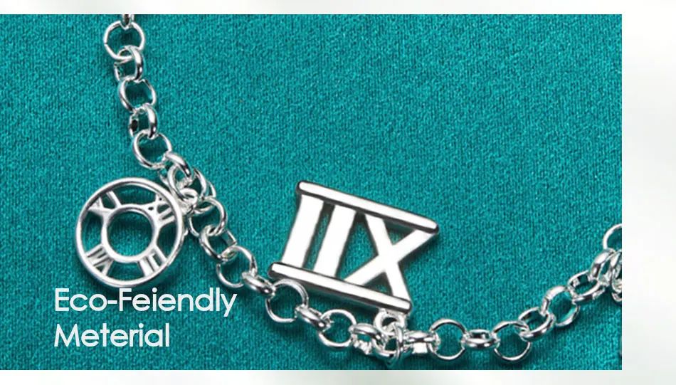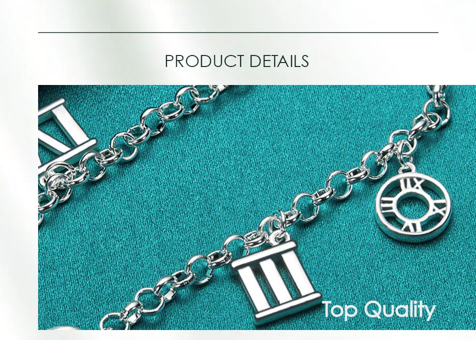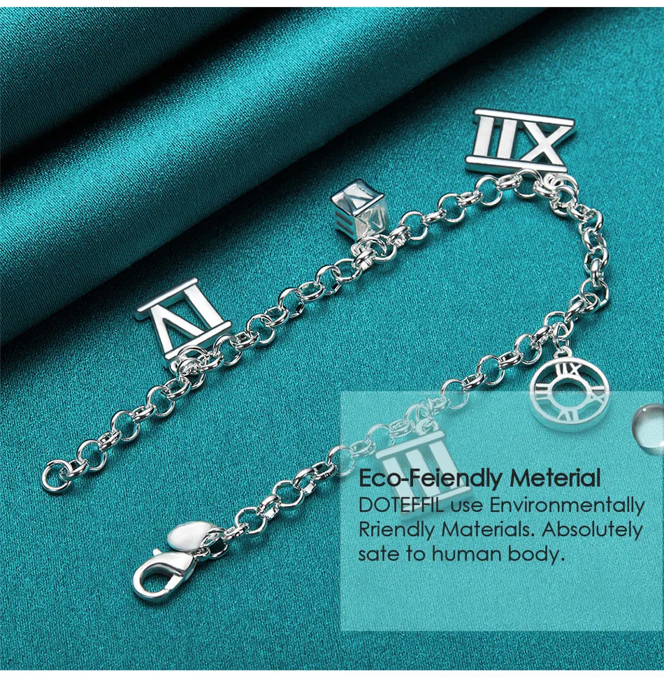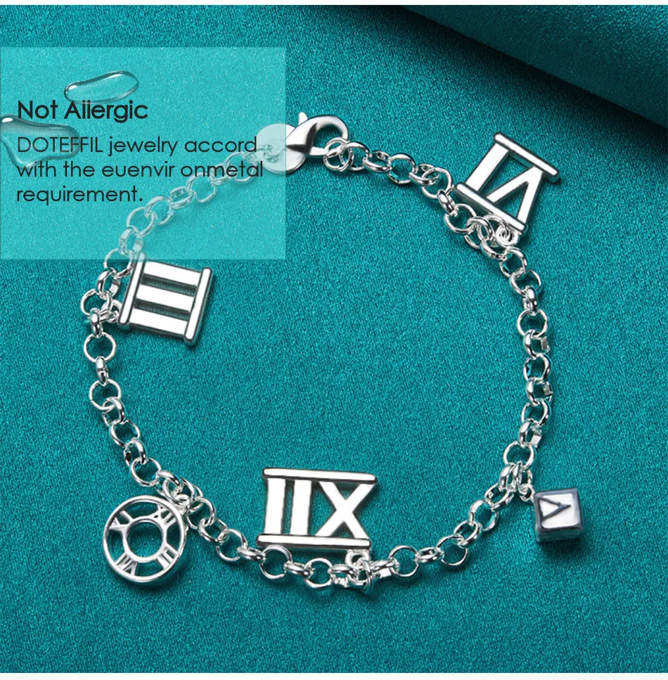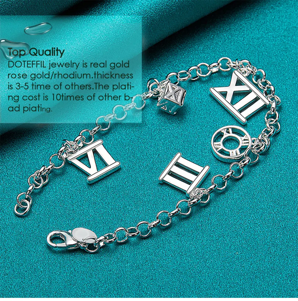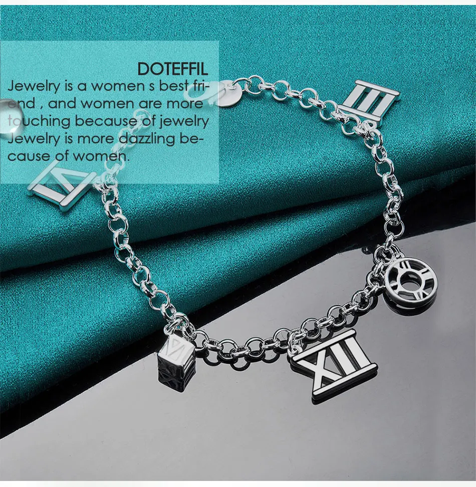 DOTEFFIL 925 Sterling Silver Five Roman Numeral Pendant Bracelet Chain For Women Charm Wedding Engagement Fashion Party Jewelry