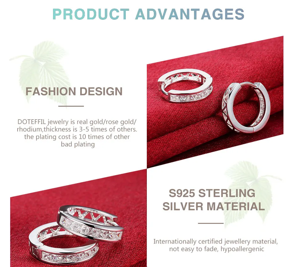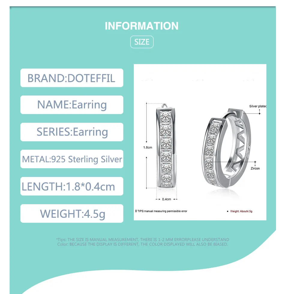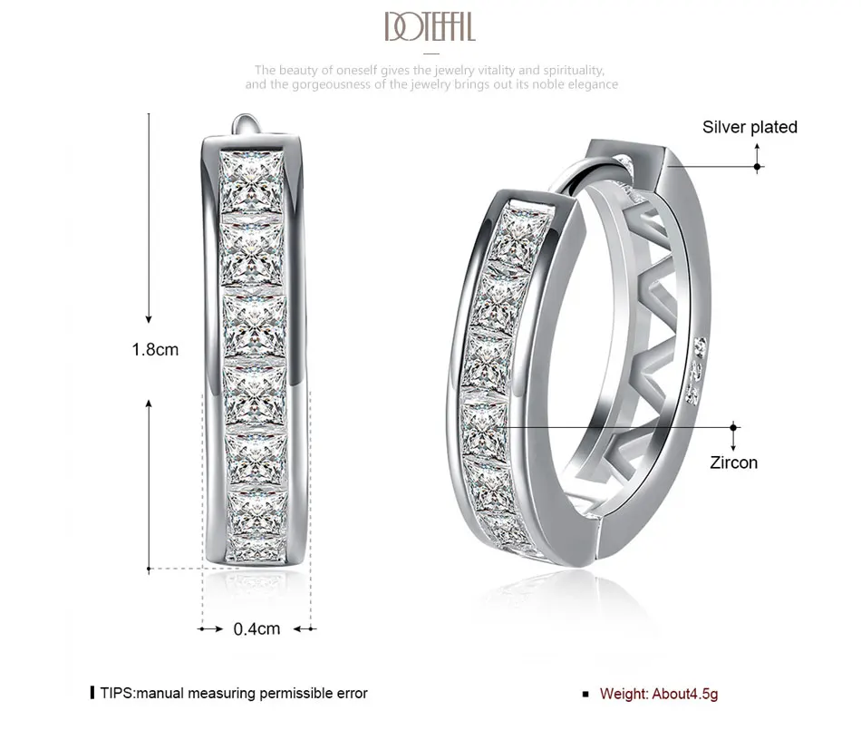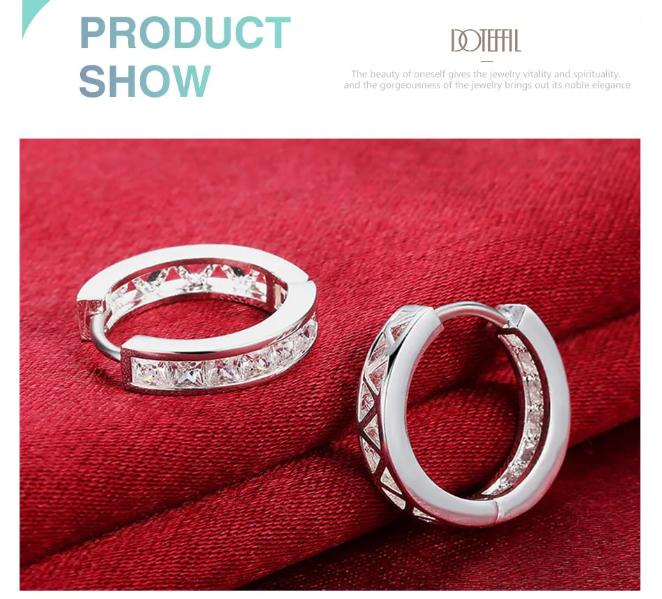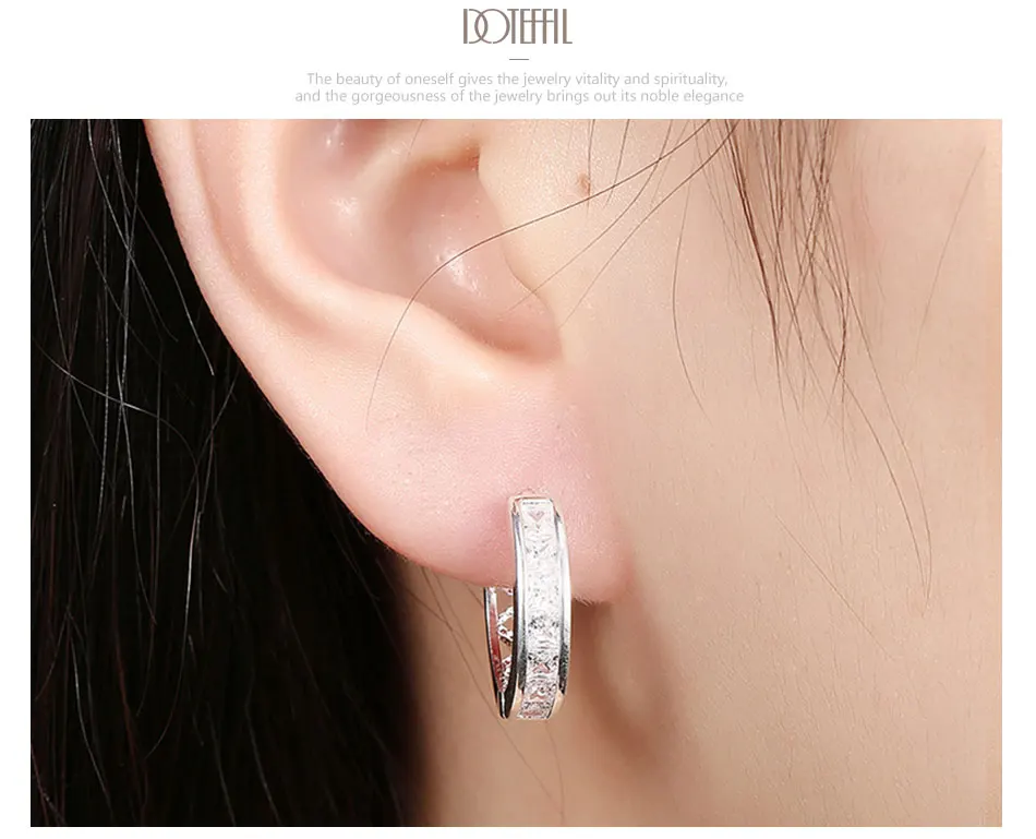 DOTEFFIL 925 Sterling Silver AAA zircon circle hoop Charm Earrings Fashion For Woman Wedding Engagement Party Gift Jewelry
