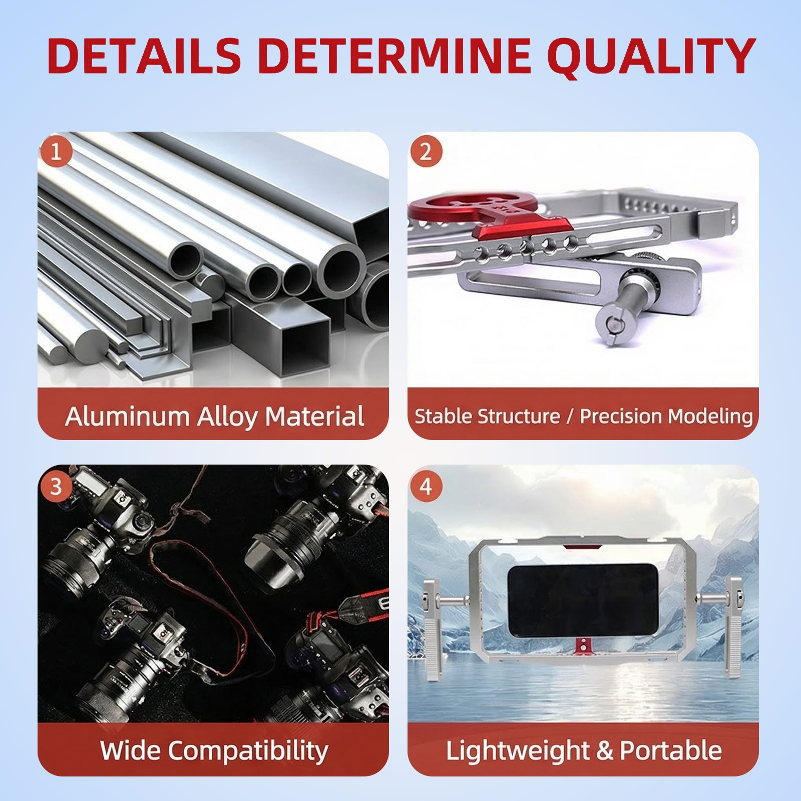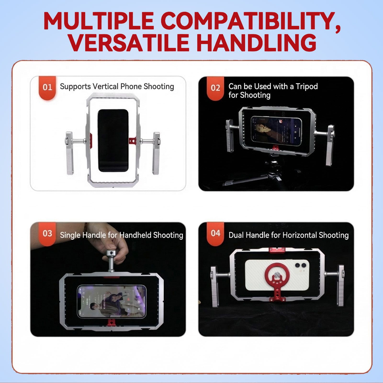 Premium CNC Aluminum Construction Crafted from high-quality aluminum alloy, this lightweight phone cage (only 216g) is extremely sturdy, making it ideal for professional use in various filming environments