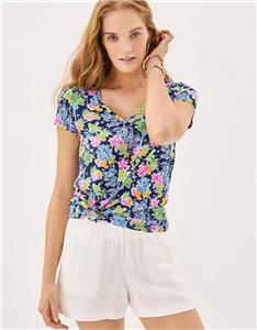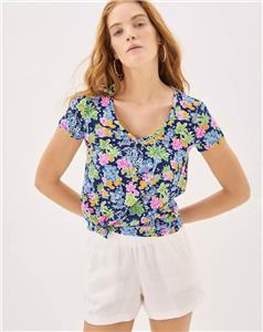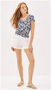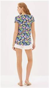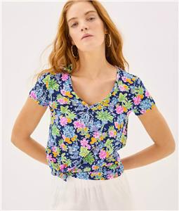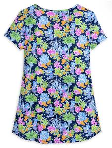 Mickey and Minnie frolic among tropical flora and Fantasyland Castles on this lovely print design by Lilly Pulitzer. This all-cotton v-neck tee will be a fun part of your Walt Disney World vacation wardrobe.