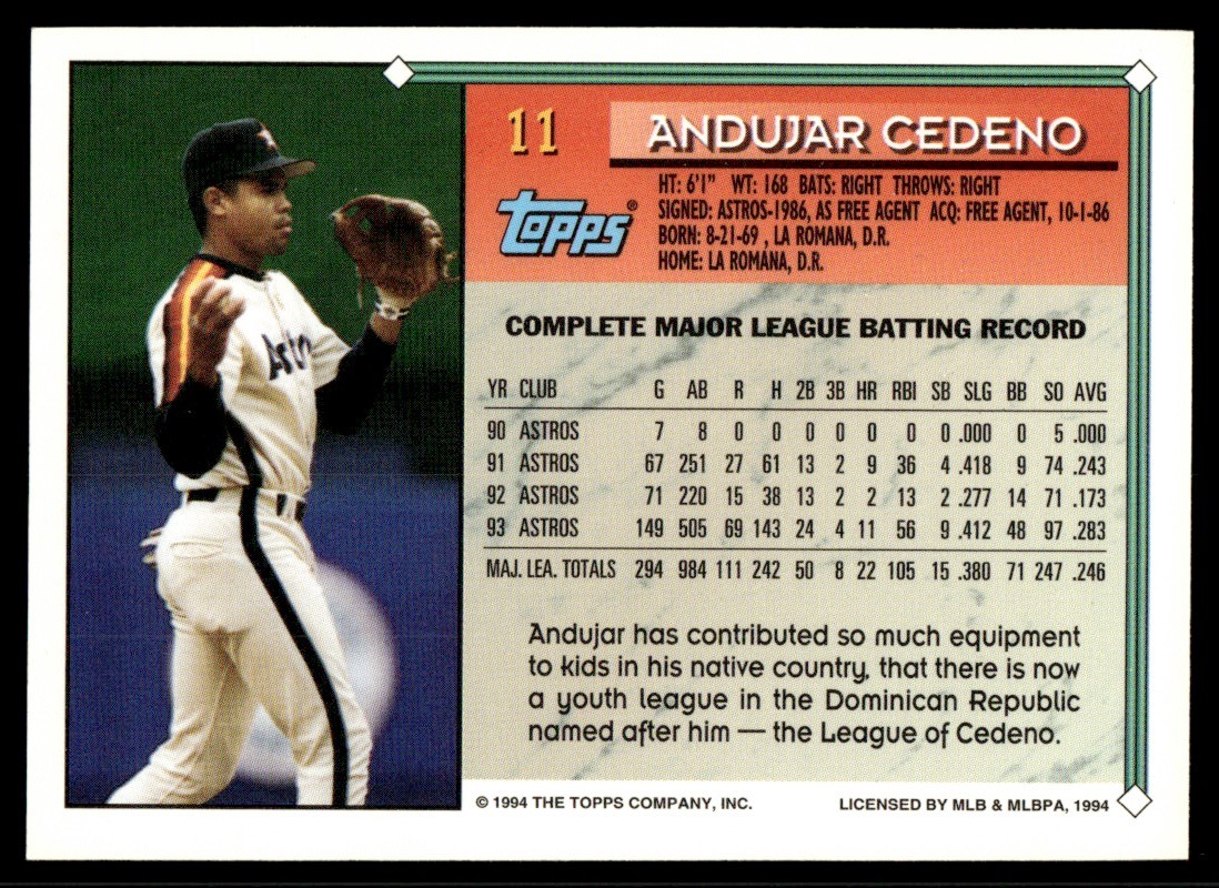 | 1994 Topps Andujar Cedeno Houston Astros #11 20025 |