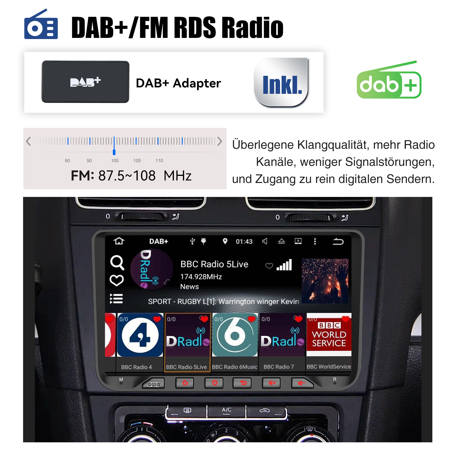 CD Klangqualität und Rauschfreiheit bei hervorragender Übertragung machen DAB-Radio zu einem besonderen Erlebnis im Fahrzeug.