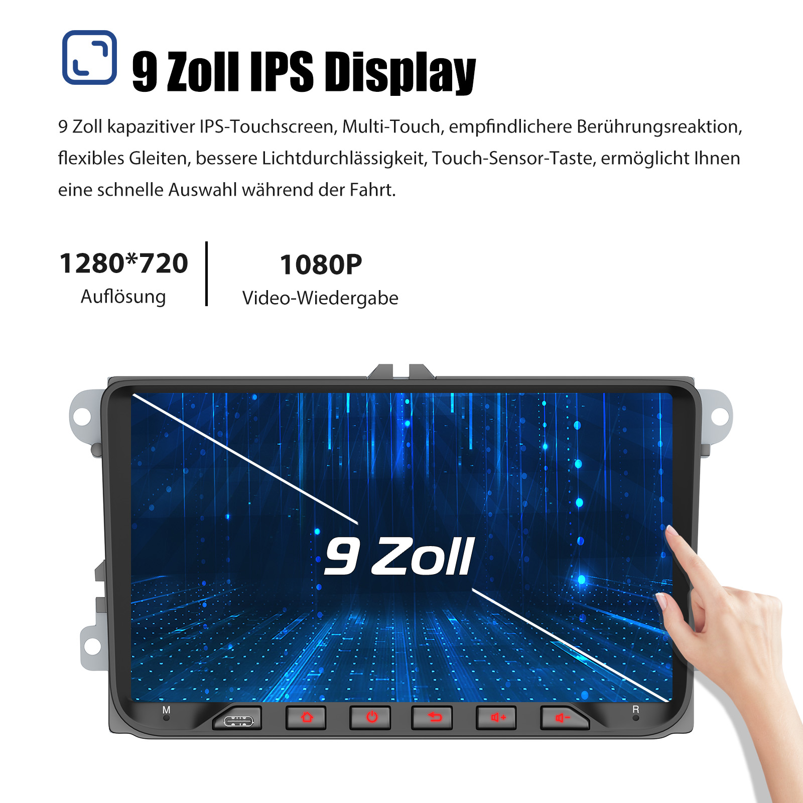 Bildschirm: 1280x720 IPS kapazitiver Touchscreen,178° Betrachtungswinkel, der Effekt der seitlichen Ansicht