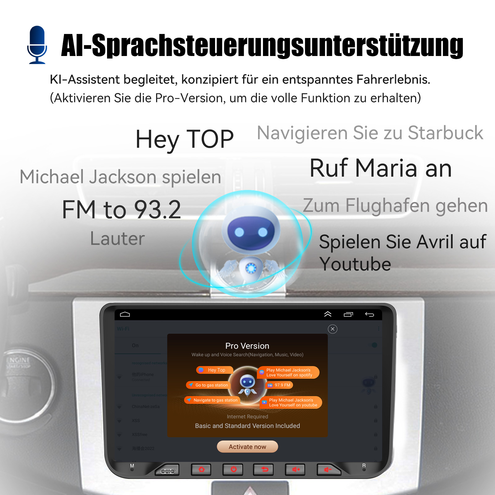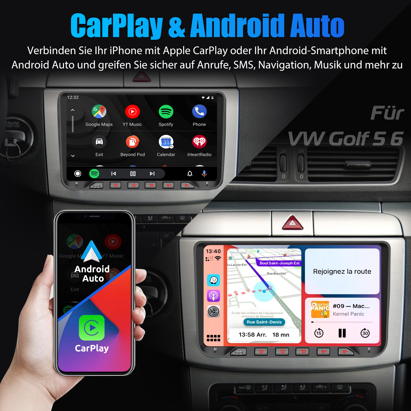 RDS/FM-Radio und Bluetooth: Integriertes Bluetooth 4.1 mit A2DP, unterstützt Bluetooth-Freisprecheinrichtung, Download von Telefonbuch-Anrufprotokollen, Audio-Streaming von Musik. Eingebautes Mikrofon, um Ihren Anruf klarer zu machen. UKW/RDS-Radio kann 30 gängige Sender mit hoher Stereoqualität voreinstellen, die vollautomatisch, halbautomatisch und präzise nach Kanälen suchen können.