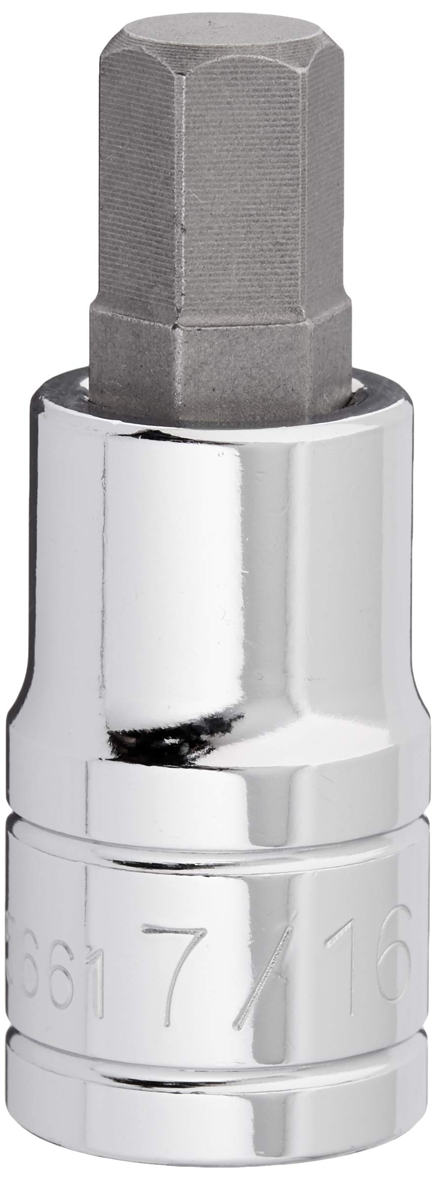 Titan Tools 15661 1/2-Inch Drive x 7/16-Inch Hex Bit Socket is built to last and get the job done. The 1/2-Inch drive socket is constructed of strong chrome plated chrome vanadium and the 7/16-Inch hex bit is constructed of durable S2 alloy steel. Detent notches in the drive end provide secure retention of ratchets and extensions. It features an easy to read die-stamped size marking. This hex bit socket is made in Taiwan.