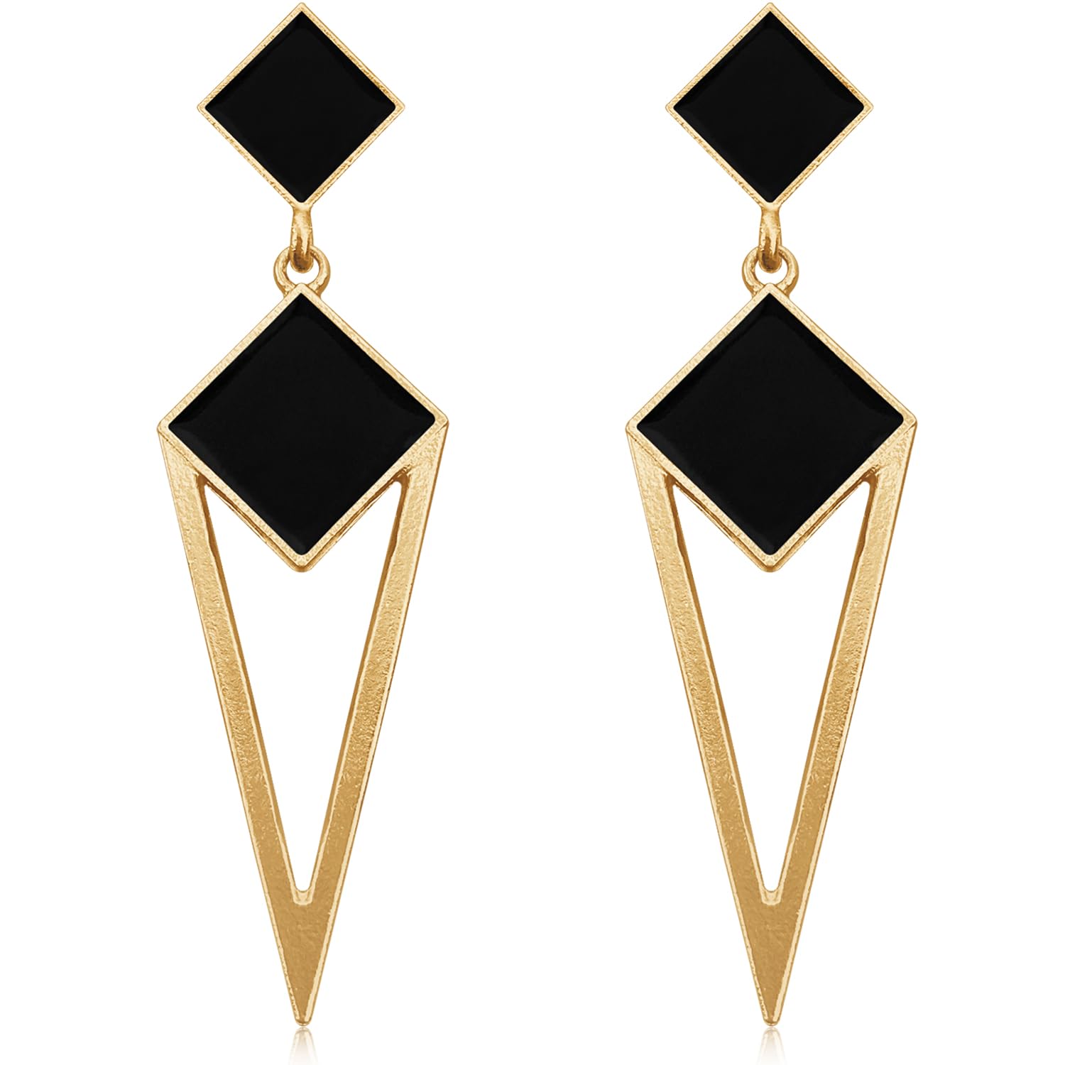 DescriptionGdpaddy 14k Gold Enamel Hollow Triangle Dangle Drop Earrings Black Square Geometry Stud Earrings For Women
