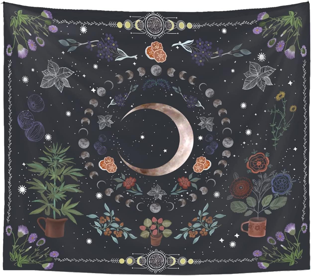 LINICE Plant Tapestry, Nature Moon Phase 60"L x 50"W,
