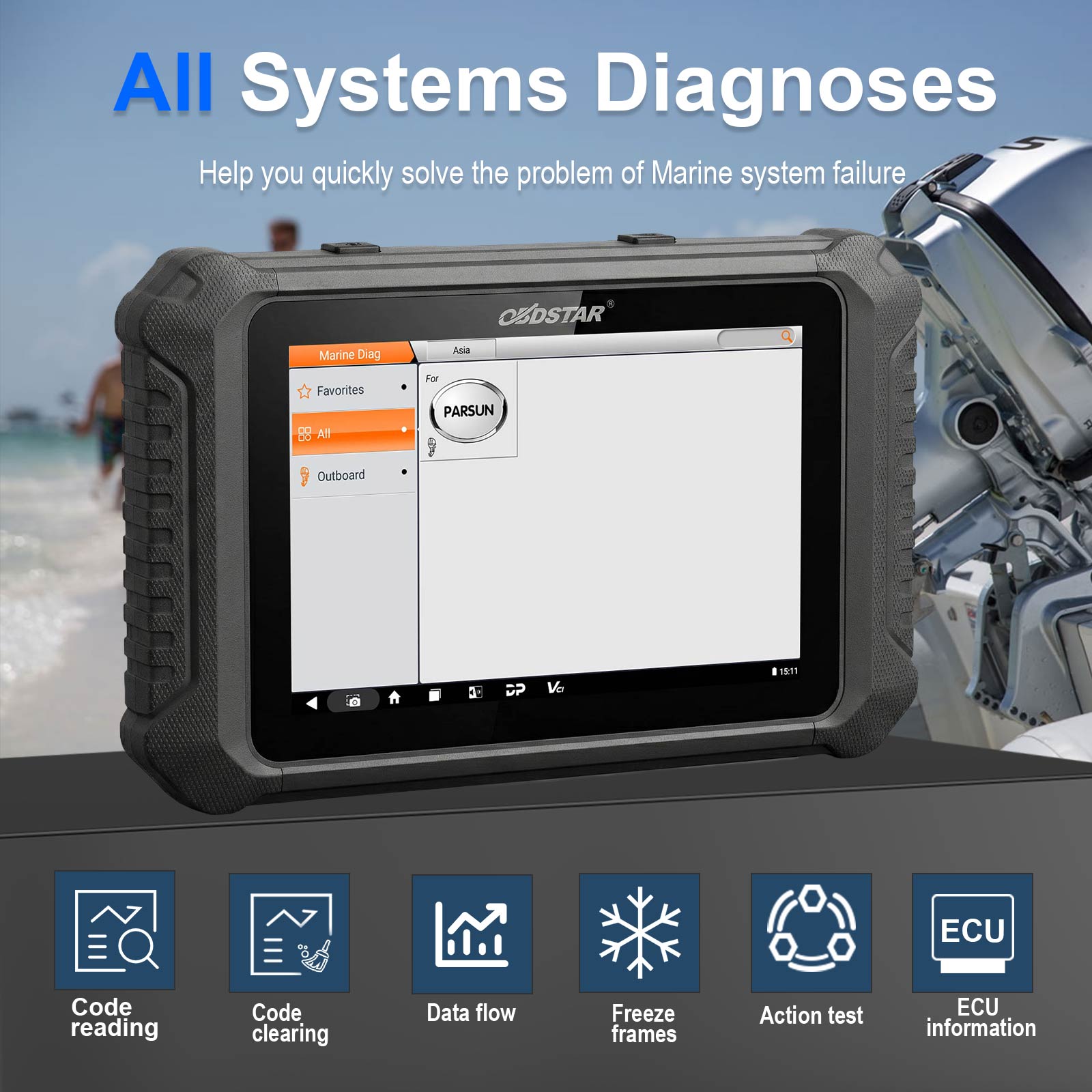 MarineMaster is OBDSTAR's new generation device for marine (Jet ski/Outboard) intelligent diagnosis.