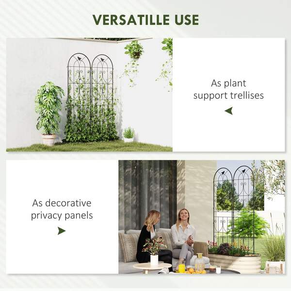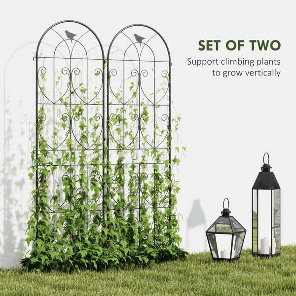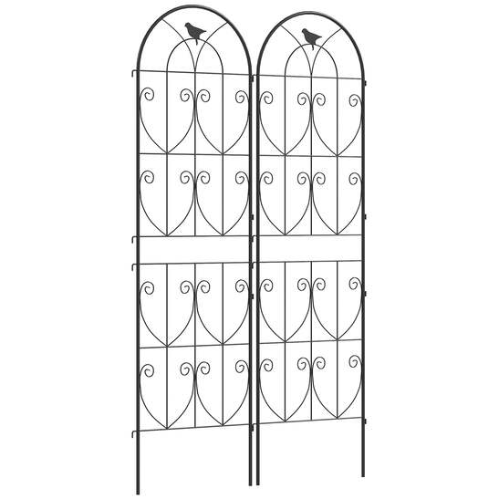 Transform your garden into an enchanting oasis with the metal trellis. The two trellises, adorned with delicate bird motifs, offer lots of space for climbing plants and double as charming privacy panels. Crafted from weather-resistant, powder-coated metal, they promise lasting support and easy ground insertion. The plant supports for garden are great for gardeners who wish to add a touch of elegance while providing practical plant supports.