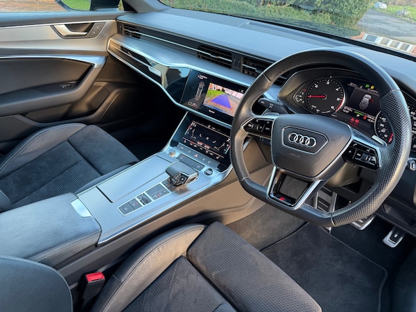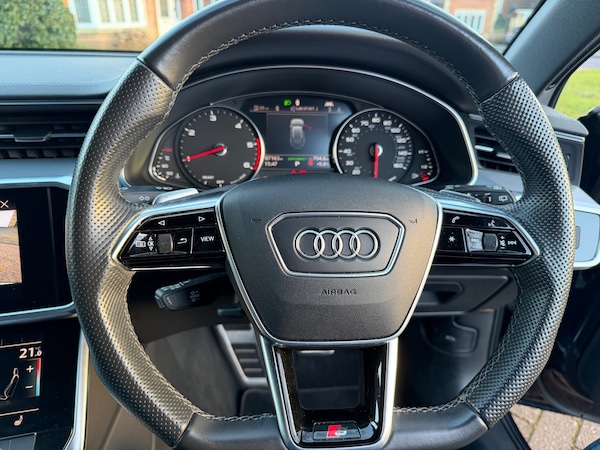 2021 Audi A6 Estate S line Black Edition 40 TDi 5dr S Tronic ( only £195 tax ) finished in Firmament blue metallic with full S line trim including multi functional flat bottom steering wheel and black addition pack ,factory 8.5 x 20 wheels, sport level S line seating and lumbar support, cruise control, comfort pack and individual driver seat set up, electric front seats, keyless entry, rear view camera and MMI navigation with MMI touch+ twin touch screens. The car has all the usual features that come with this vehicle, matrix LED headlights , dual climate, electric windows all round, power boot and electric heated mirrors. The car has a full and up to date service history and a February 2027 MOT and is in an all round superb condition. Any test or trial. Please telephone for an appointment to view. UK Mainland delivery £199. Possible part exchange car or motorcycle.
