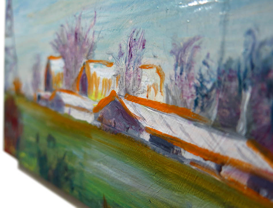 Oil Paint on canvas of 16 by 12 by 3/4 in., including hanging clip.