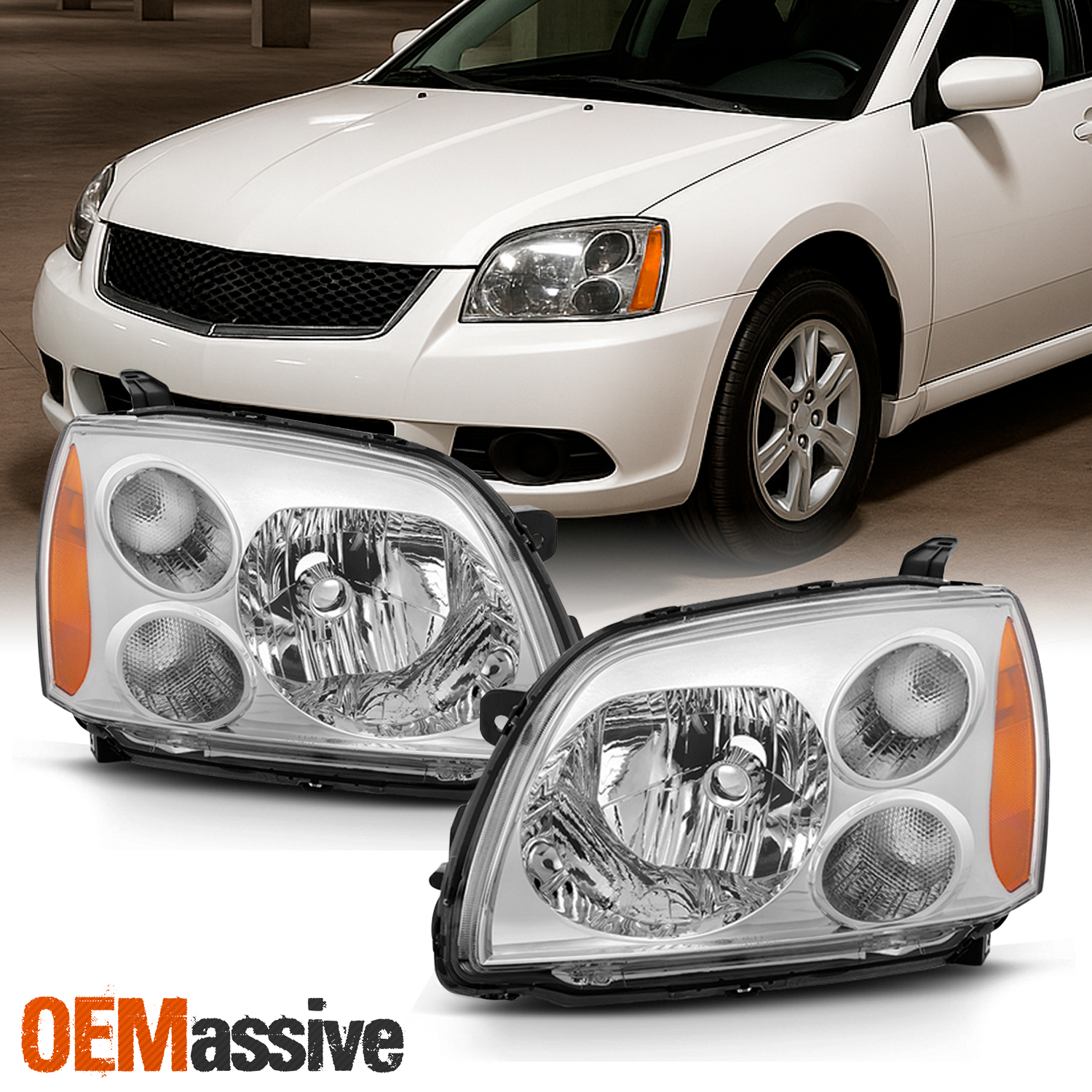 Fit 2004-2012 Mitsubishi Galant Chrome Halogen Type Headlights Lamps Replacement