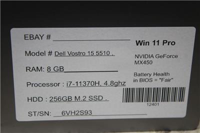 | Dell Vostro 15-5510 15.6" Laptop i7-11370H 4.8GHZ 8GB RAM 256GB SSD NVIDIA HDMI Cam - Win 11 Pro |