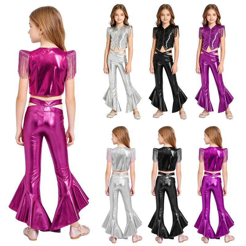 The glossy metallic color-block design is trendy and eye-catching, perfectly in line with the current fashion trends and making your girl stand out.
