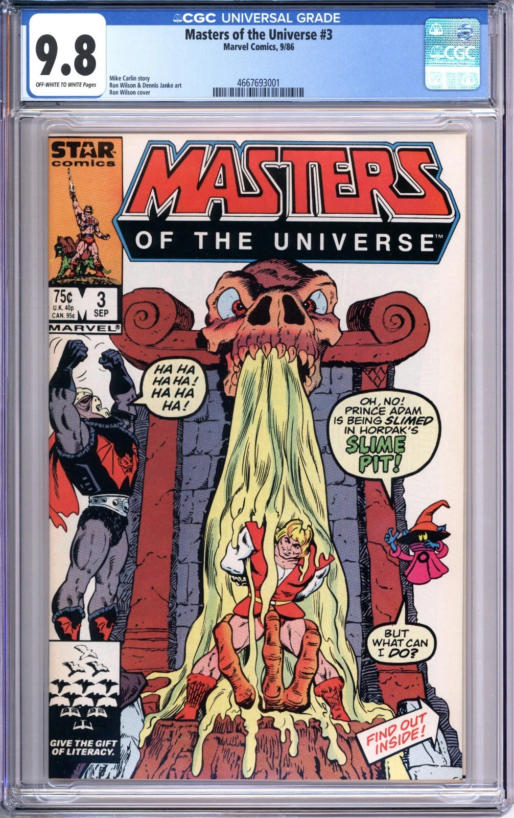 Up for sale is a copy of Masters of the Universe #3 graded 9.8 NM/MT with off-white to white pages by CGC. This will be packaged securely between thick sheets of cardboard and bubble wrap and shipped in a box via USPS priority mail. I do combine shipping on multiple items; feel free to email with any questions.