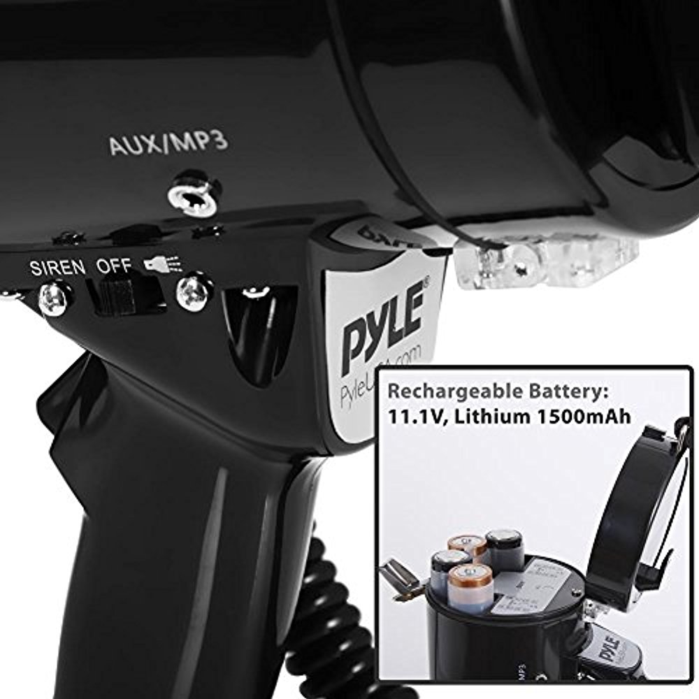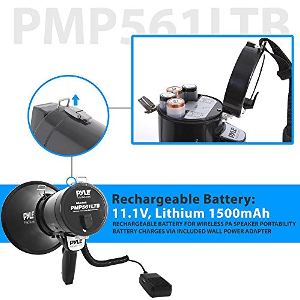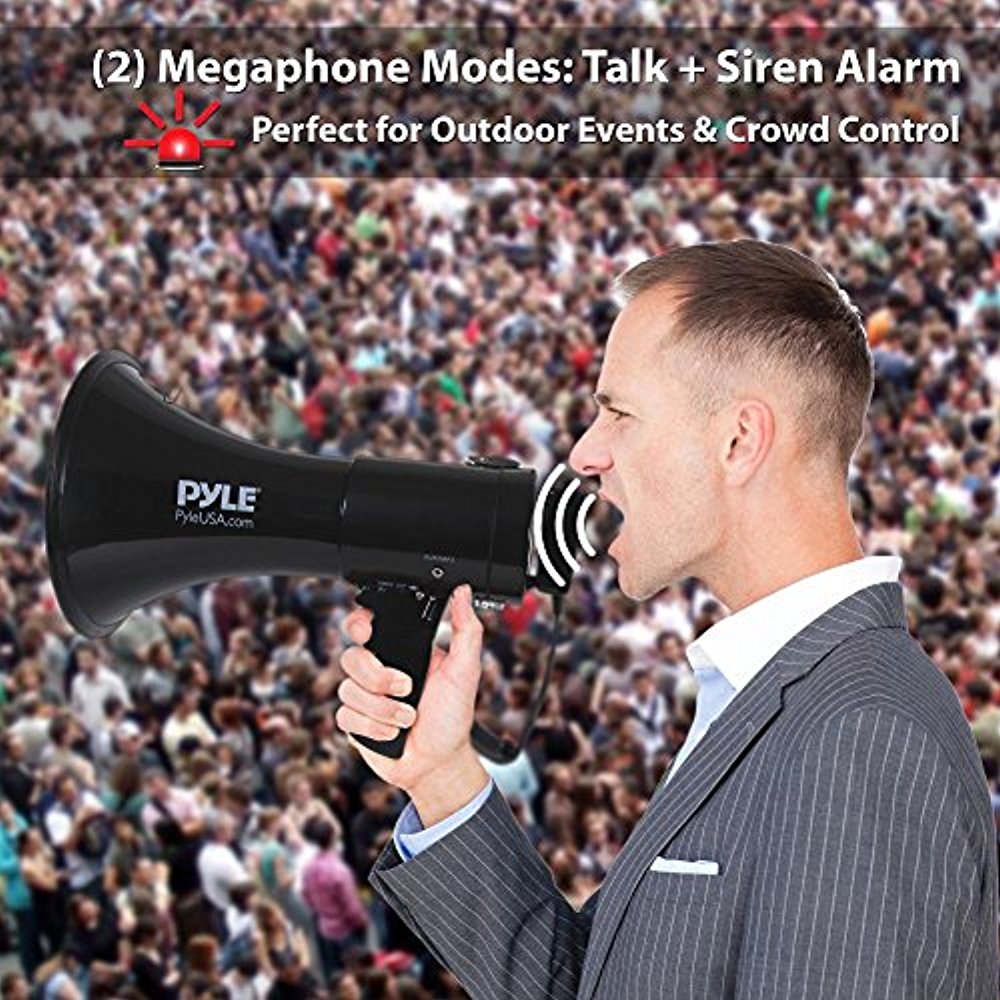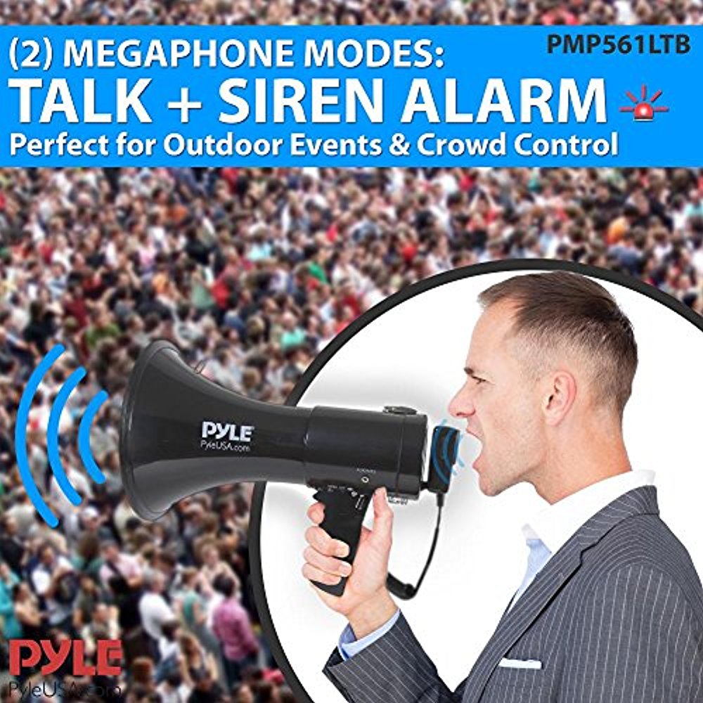 Pyle Portable Compact PA Megaphone Speaker with Alarm Siren & Adjustable Volume - 50W Handheld Lightweight Bullhorn - with Mic, AUX IN for MP3 & Rechargeable Battery - Indoor Outdoor Use - PMP561LTB