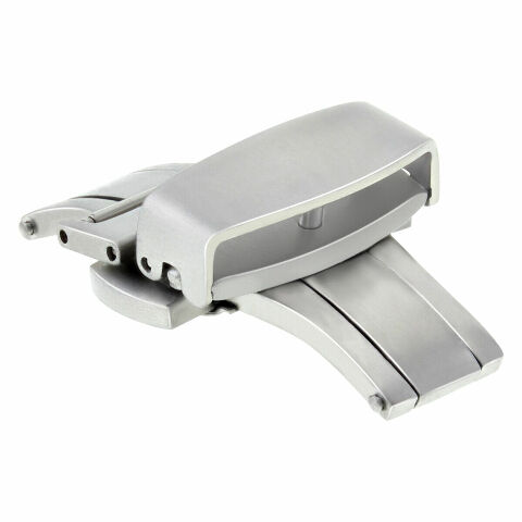 The buckle is made from 316L stainless steel, providing durability and a sleek brushed aesthetic. It is suitable for straps up to 4mm thick. The buckle width measures 20mm, and the clasp fits watch lug widths of 20mm, 22mm, and 24mm.