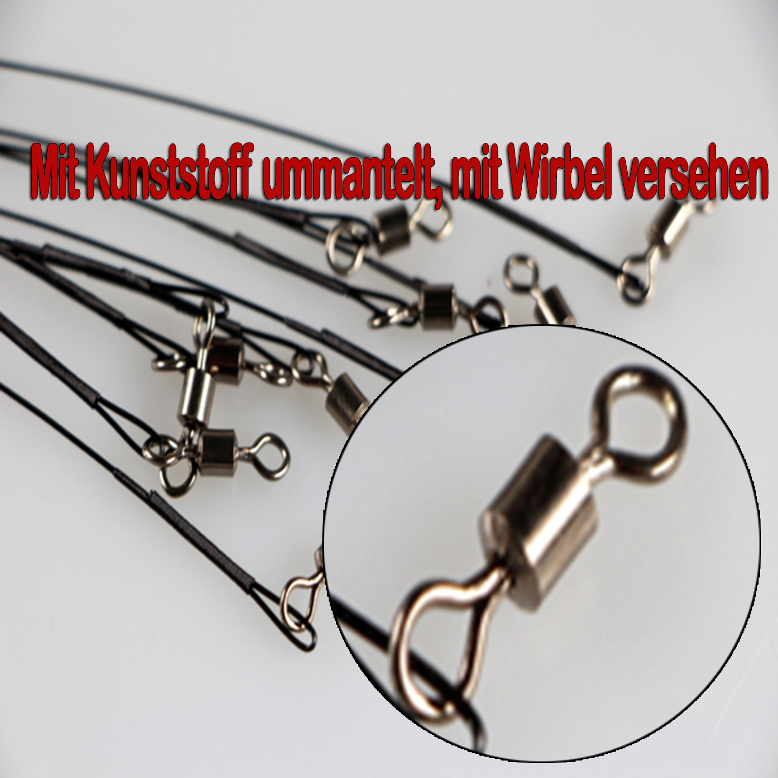 Die Stahlvorfächer sind mit Kunststoff ummantelt und zusätzlich mit einem Wirbel versehen.