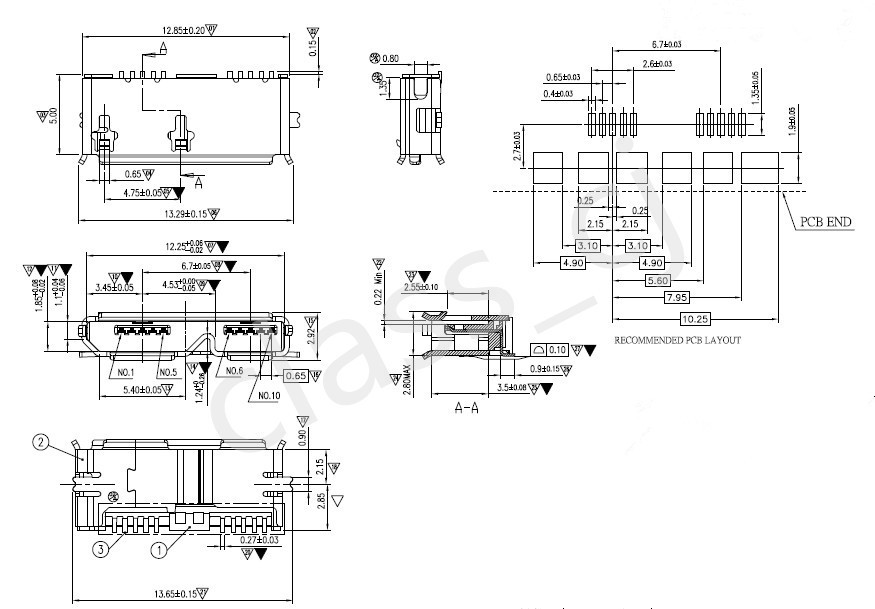 ![]() Type:Micro USB 10Pin Female SMT Contact resistance:50mΩ max Insulation Resistance:100MΩ min Withstand Voltage: AC 100V(50Hz)/min Operation Temperature Range: -20 to 85 degrees Material Shell: Contact Terminals: Brass |