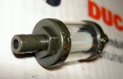 Universal Italian gas tank in line fuel filter with 8mm = 5/16" spigots for your special application. Fits any kind of equipment that needs an attachment for the fuel hose. Spigot is 8mm = 5/16" outside diameter. May disassemble for cleaning in future, if it is not too old. Diecast body and clear high impact plastic window looks and feels like glass. Brand new production from Italy that is fine for alcohol-added green gas! Sold EACH.