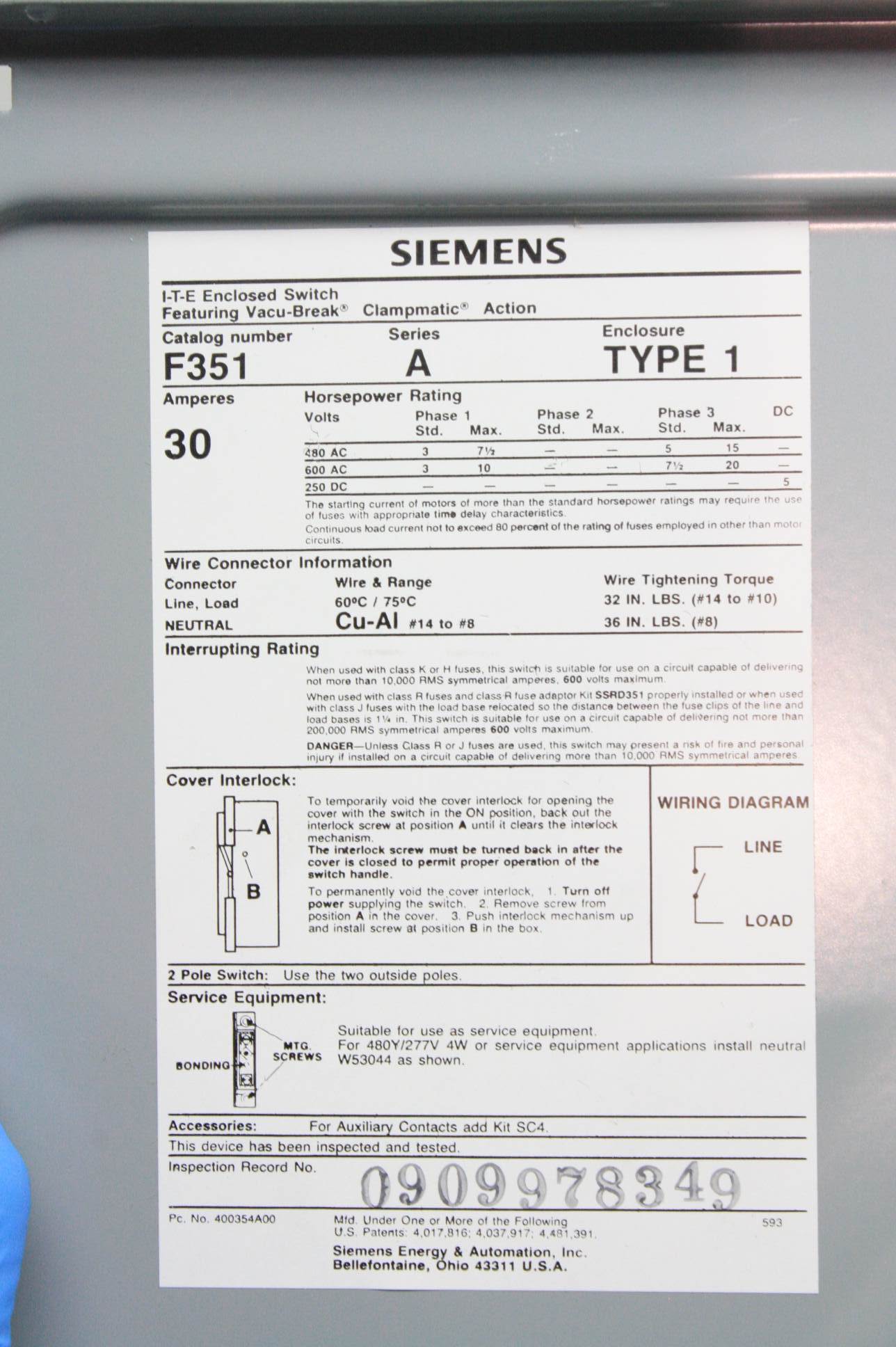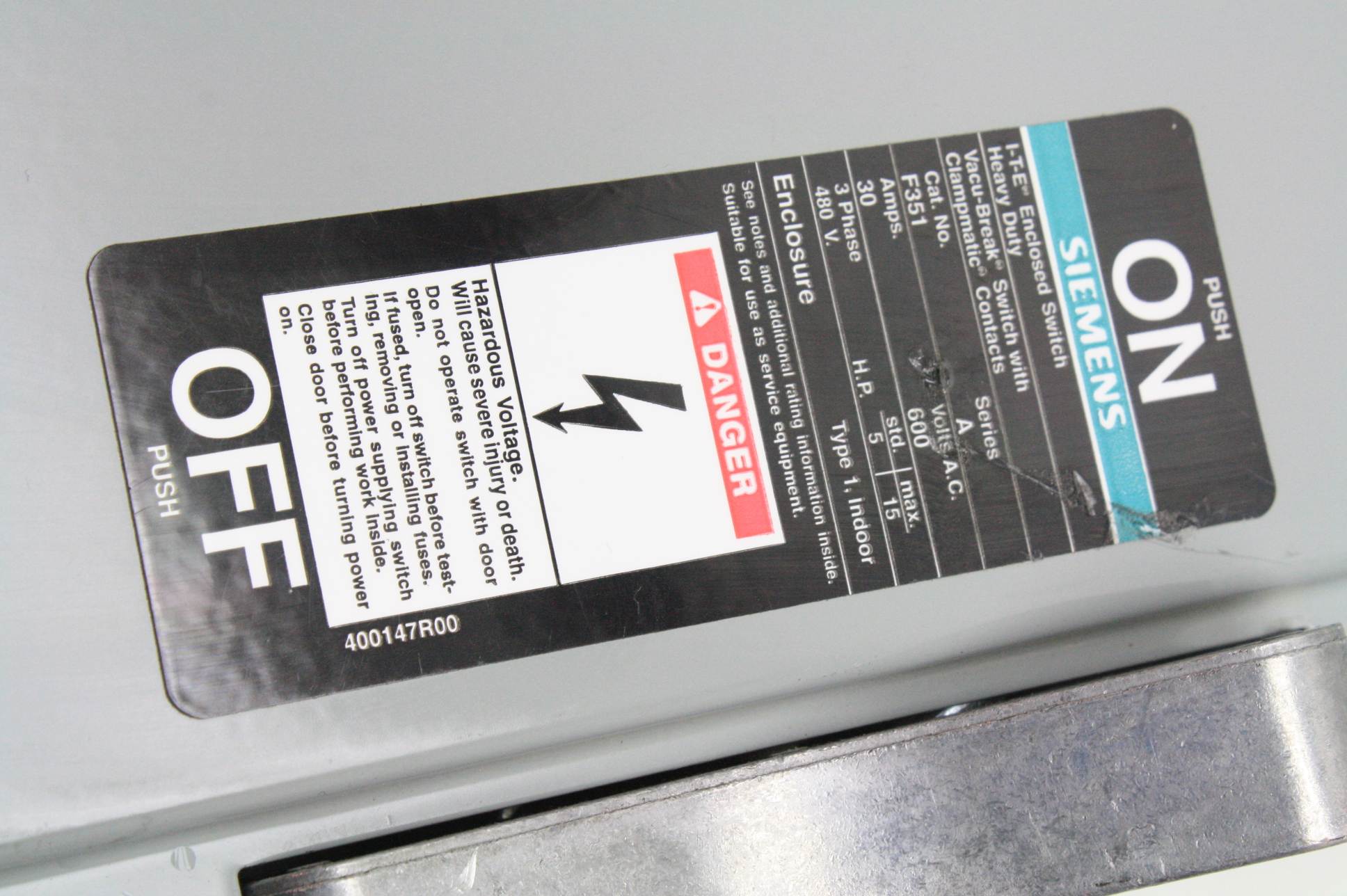 Here is a Siemens disconnect switch enclosure. Please note that the DISCONNECT IS MISSING. This only include the enclosure and switch mechanism itself. Check the pictures for reference. This comes with a 30 day right of return.