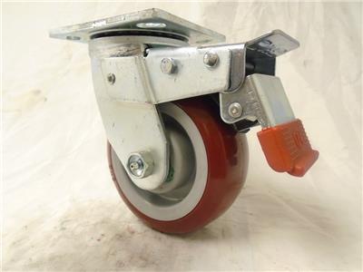 5" x 2" Swivel Caster Total Lock Brake Burgundy Polyurethane Wheel Tool Box (4)