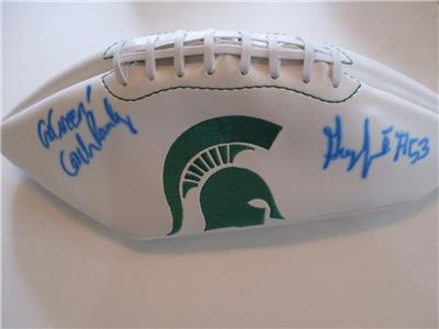 THIS IS FOR A SIGNED MICHIGAN STATE UNIVERSITY LOGO FOOTBALL. IT IS SIGNED IN SHARPIE AND OBTAINED IN PERSON BY FORMER SPARTANS GREAT GREAG JONES AND COACH RANDY. HE IS A TOUGH AUTOGRAPH TO OBTAIN. A TAMPER-PROOF MATCHING NUMBERED HOLOGRAM WILL ACCOMPANY THE ITEM AND THE COA FROM ALWAYSLEGITGRAPHS.