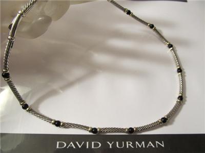 David Yurman Hampton 14K Gold Black Onyx Sterling Silver Choker Necklace 15"