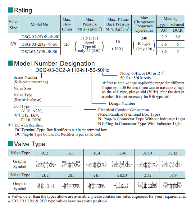 Yuken Hydraulic Solenoid Valve DSG-03-3C4-A110-N1-50 110V Coil DSG-03 Series