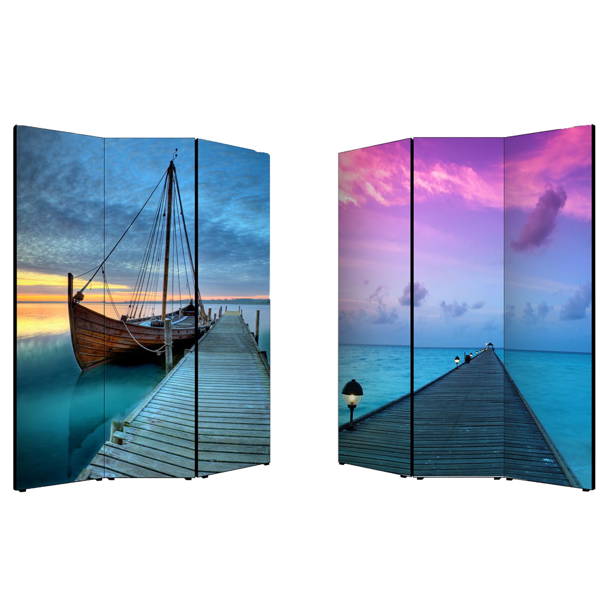 Divisore con struttura in Legno e Tela in cotone stampata in alta definizione su fronte e retro, e’ un utile Separe’ Bifacciale mobile che vi permette di dividere per privacy una parte del vostro ambiente, creando un originale panorama con sfondo artistico grazie all’immagine ed al tema scelti. Il Paravento ha una struttura mobile solida composto da 3 Pannelli pieghevoli, da posizionare su qualsiasi tipo di pavimento grazie al supporto offerto dai piedini in plastica forniti. Un complemento d’arredo che decora o nasconde angoli della vostra stanza, permettendovi di strutturare e organizzare uno spazio con grande facilita’. Le 3 ante pieghevoli sono fissate tramite un sistema di cerniere che ne consente la facile mobilita’ e apertura a seconda delle esigenze. Un’idea originale per gli ambienti di casa come soggiorno, camera da letto, in cucina, bagno, sale da pranzo, ingresso, o per tutti i luoghi non domestici, come ufficio, Hotel, bar, negozio o laboratorio, perché sono adatti a qualsiasi tipologia di stile e arredamento. Prodotto completamente in Italia, le sue dimensioni sono 176x135.6x3,2 cm