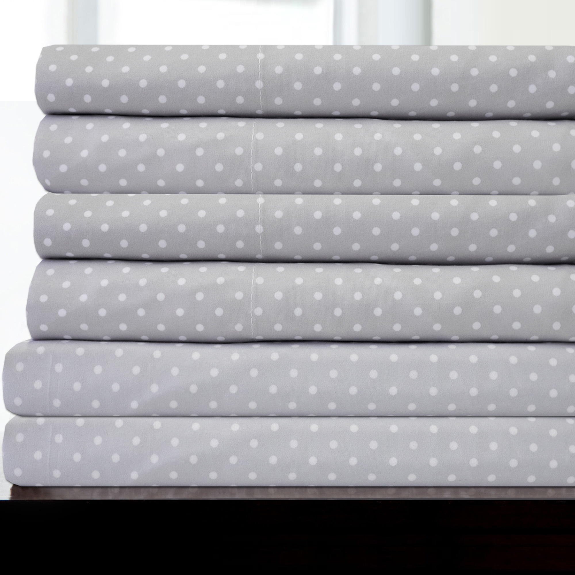 Contemporary Dot design and soft to the touch, these Incredibly Soft Sweet Home Collection 100% Polyester Microfiber 6 Piece Sheets can pair with a solid-color duvet to create a bed of warmth, style and comfort.