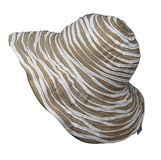 100% Cotton. 50% Cotton and 50% Paper Ribbon Reversible Hat with Shapeable wire brim