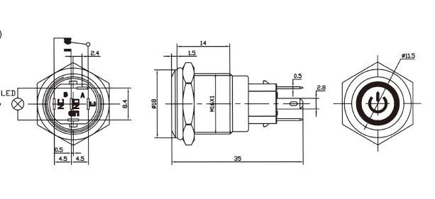 ![]() Mounting Cut Hole: 16mm LED Power: DC12V Switch Action: Momentary (Self-Return) When you release the button will return Latching (Self-Locking) When you release the button will fixed Switch Contact: 1NC 1NO SPDT Head Shape: Flat Max Switch Rating: 3A/220VAC Terminal Type: Solder or fit for 2.8mm crimp terminals. Body Material: Brass Nickel-plated Protection Rating: IP67/IK09 Panel Thickness: 1 - 6mm Weight:14g |