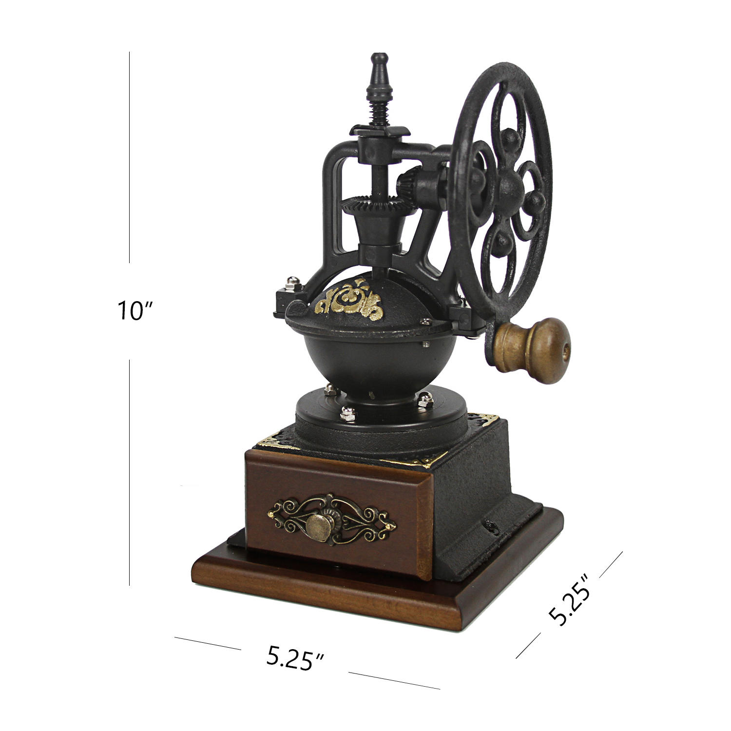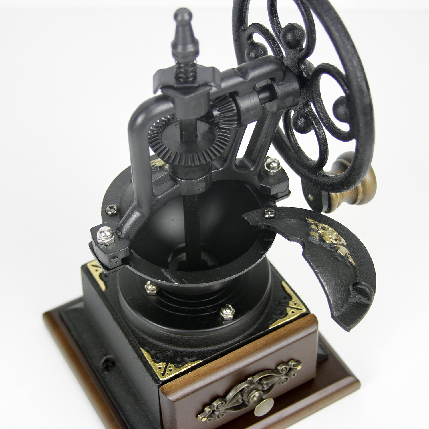 The grinder is an antique replica item. The vintage style is referred to this type of coffee grinder as shown in the product pictures and was taken by the actual product.