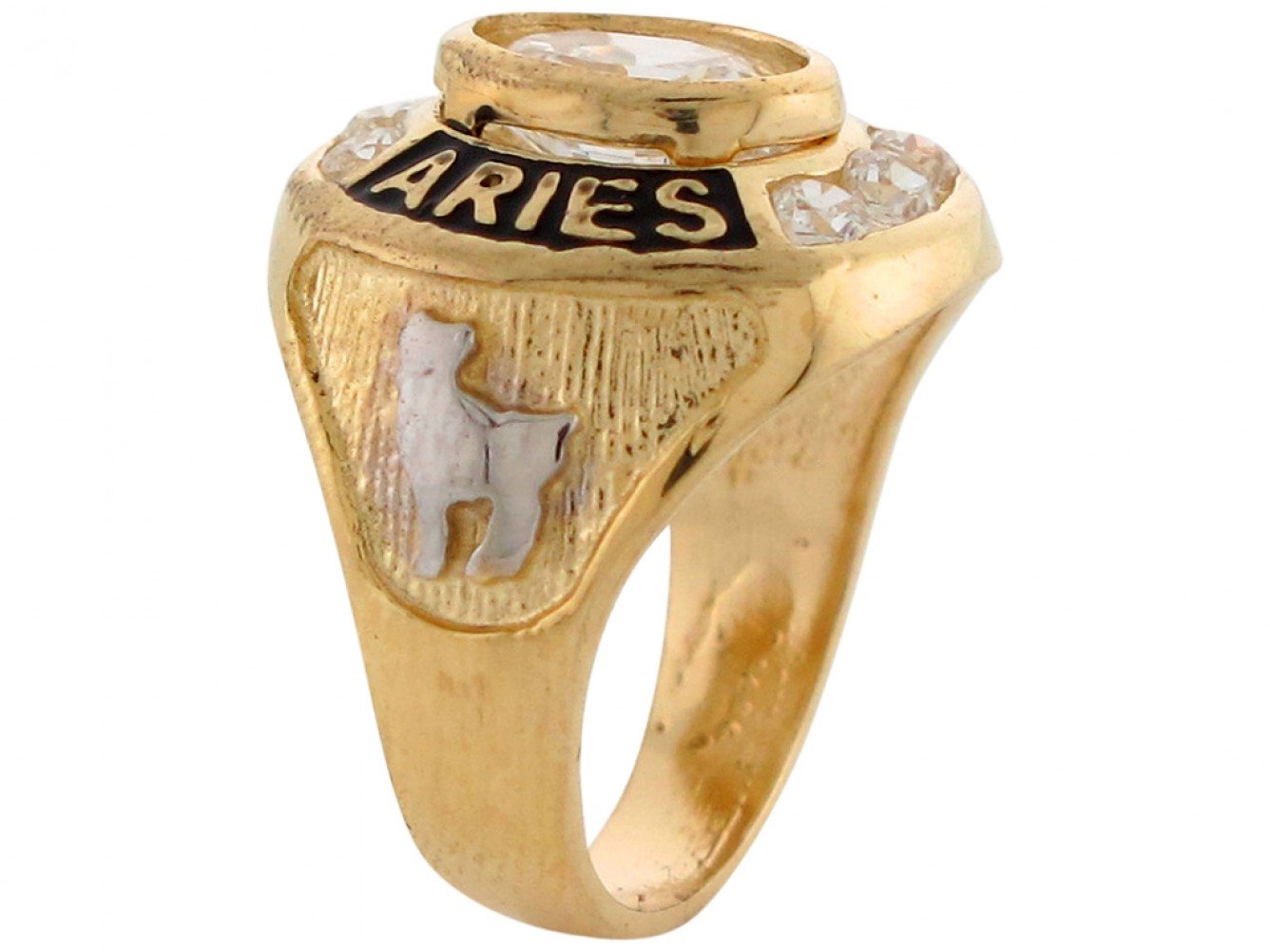 10k or 14k Two Tone Gold White CZ Simulated April Birthstone Enamel Aries Zodiac Baby Ring